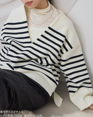 ディープスリットネックボーダーニット【821】