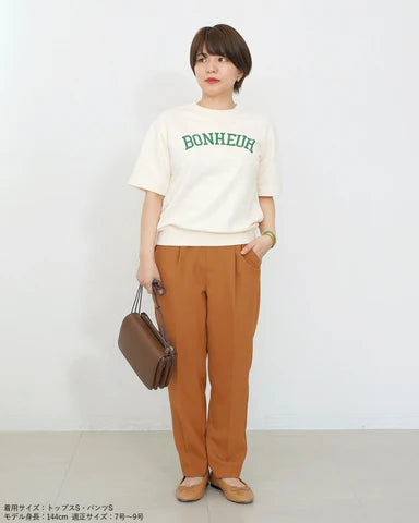 (S/右)着丈は足の甲に乗らないフルレングスの長さです。着丈や全体のバランスを見た時に、Sロングだと、とても足が長く見える為、素敵だと感じました。ブラックのテーパードパンツは定番アイテムですし、Sショートも他にないバランスで惹かれる為、丈違いで欲しいくらい使い易いパンツだと思います。Biwa 148cm(通常5号、肩幅37cm、バスト78㎝、袖丈48㎝、裄丈66.5㎝、ウエスト61㎝、ヒップ83.5㎝、股下67㎝)