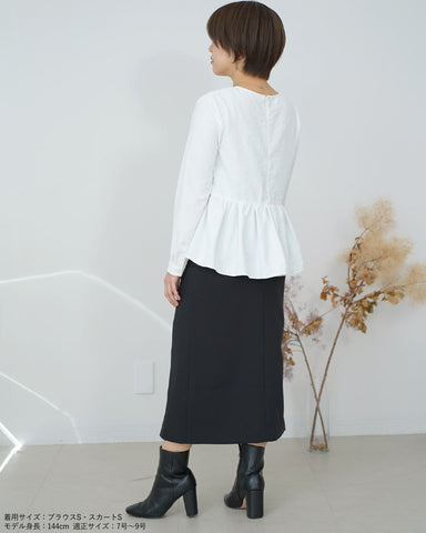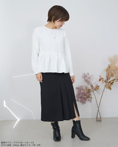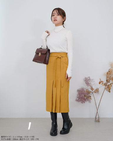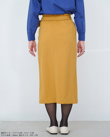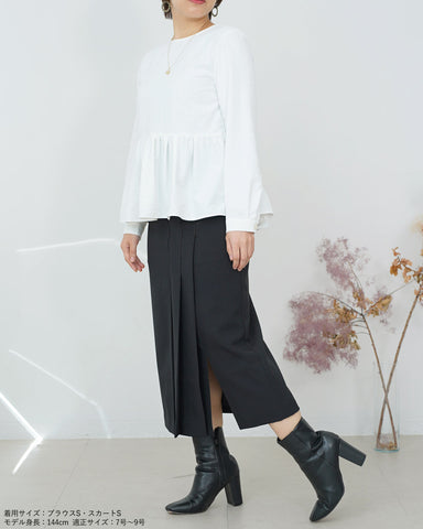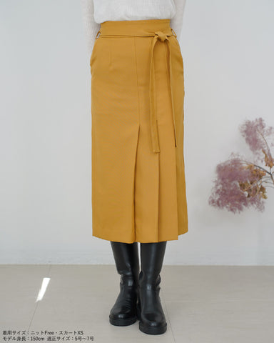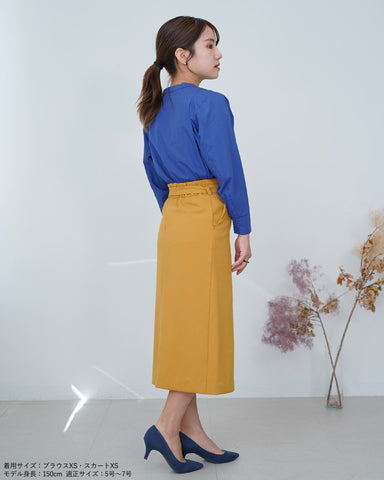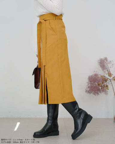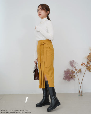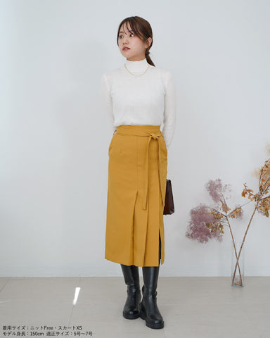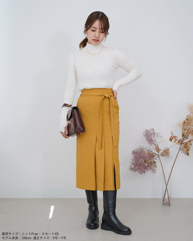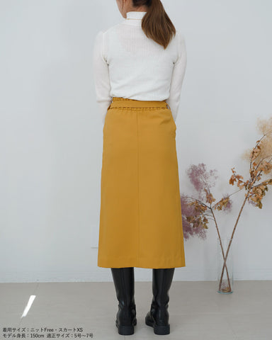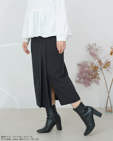 スッキリとしたシルエットのデザインスカートなので、トレンドのボリューム袖のトップスやふわふわニットと合わせるのも良し。
