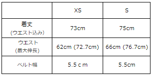 (S/右)ウエスト、ヒップ回りに余裕がありますが、ウエストはリボンにより多少サイズを調整できます。少し落ち感は出ますが、おなか回りにストレスなく着用したい方、厚手のインナーをインしたコーデが多い方は普段XSサイズでジャストサイズでもワンサイズあげたSを選んで頂いてもスッキリ着用できます。