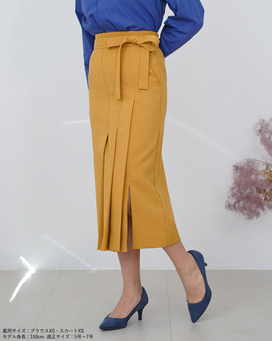 サイド部分にデザインプリーツを施した、ストレートシルエットのスカートをおつくりしました。