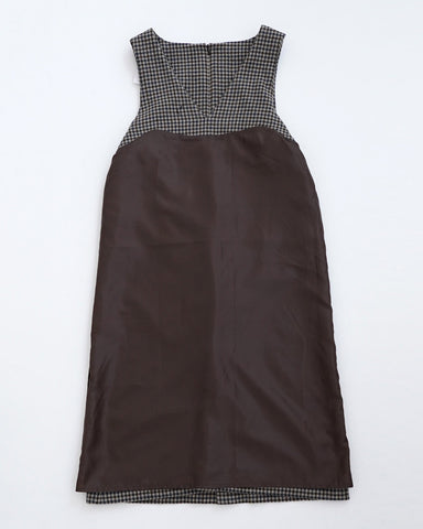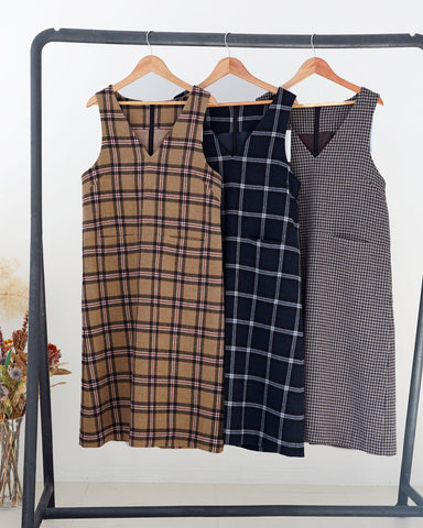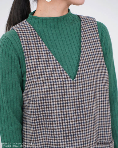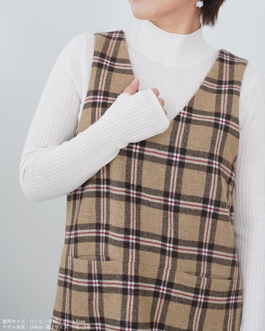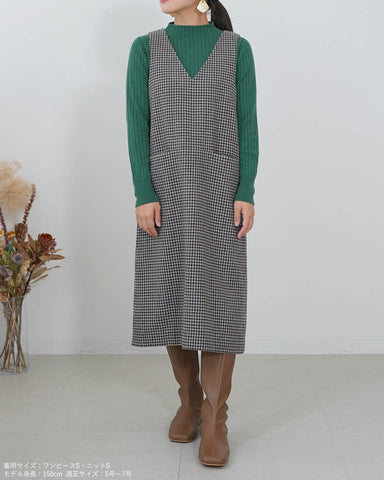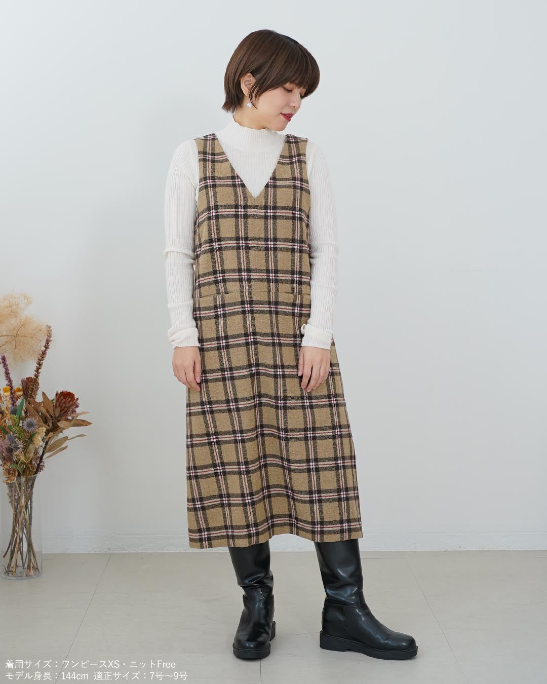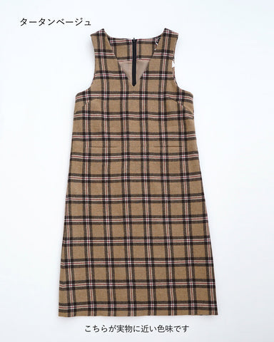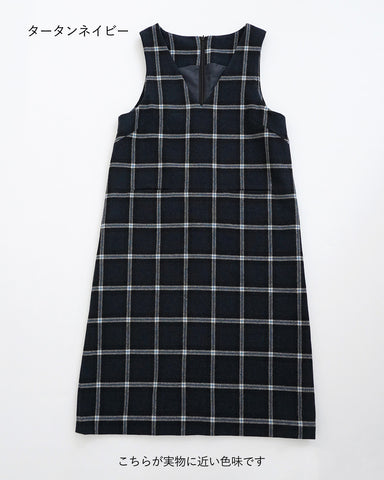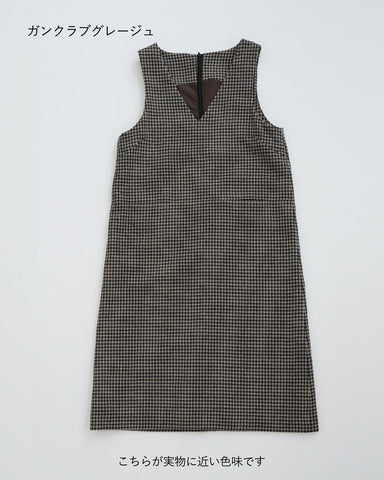 さりげないAラインシルエットのVネックジャンパースカート。タータンチェック、ガンクラブともに、小柄さん向けに小さめの柄を採用しております。
