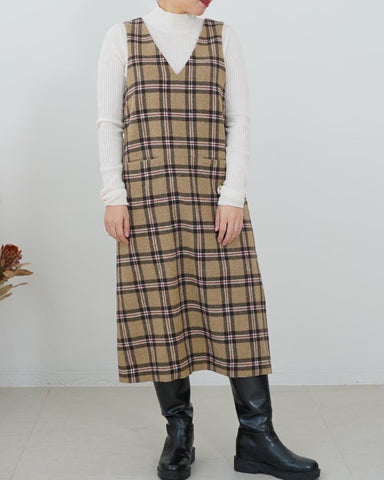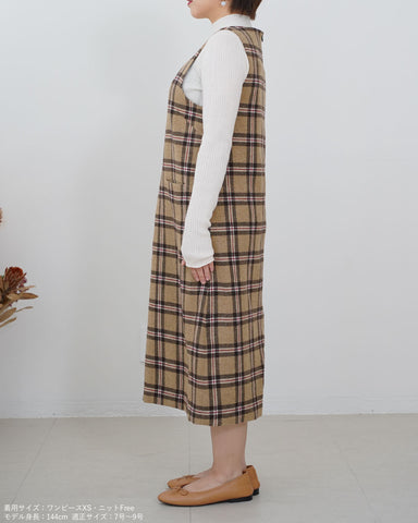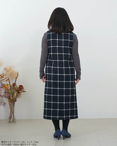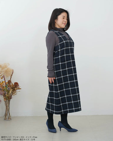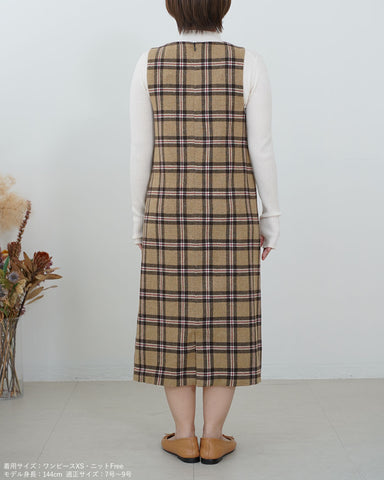 147オリジナルチェック柄の上質な国産ウール生地でジャンパースカートをおつくりしました。