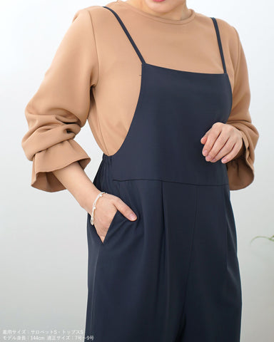 (S/写真)全体的にジャストサイズで、肩紐の長さを標準に設定しても動きやすく快適です。落ち感のある生地なのでボディラインを拾いにくく、ウエスト切り替えで足が長く細く見えると思いました。