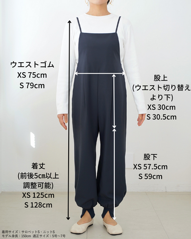(S/右)アジャスターがあるのでSでも問題ありません。身幅とヒップはややゆとりがでますが大きすぎず着用できました。バストがあるかたはSの方がよさそうです。 -