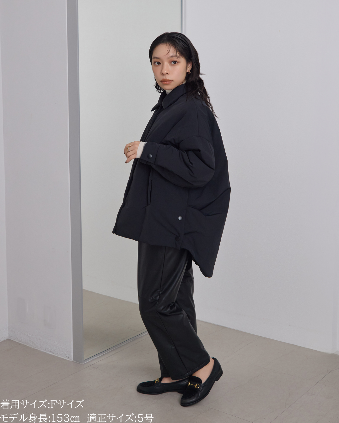 バサッとオーバーサイズで着れるアウターですが、もちろん小柄さん仕様のサイジングに。