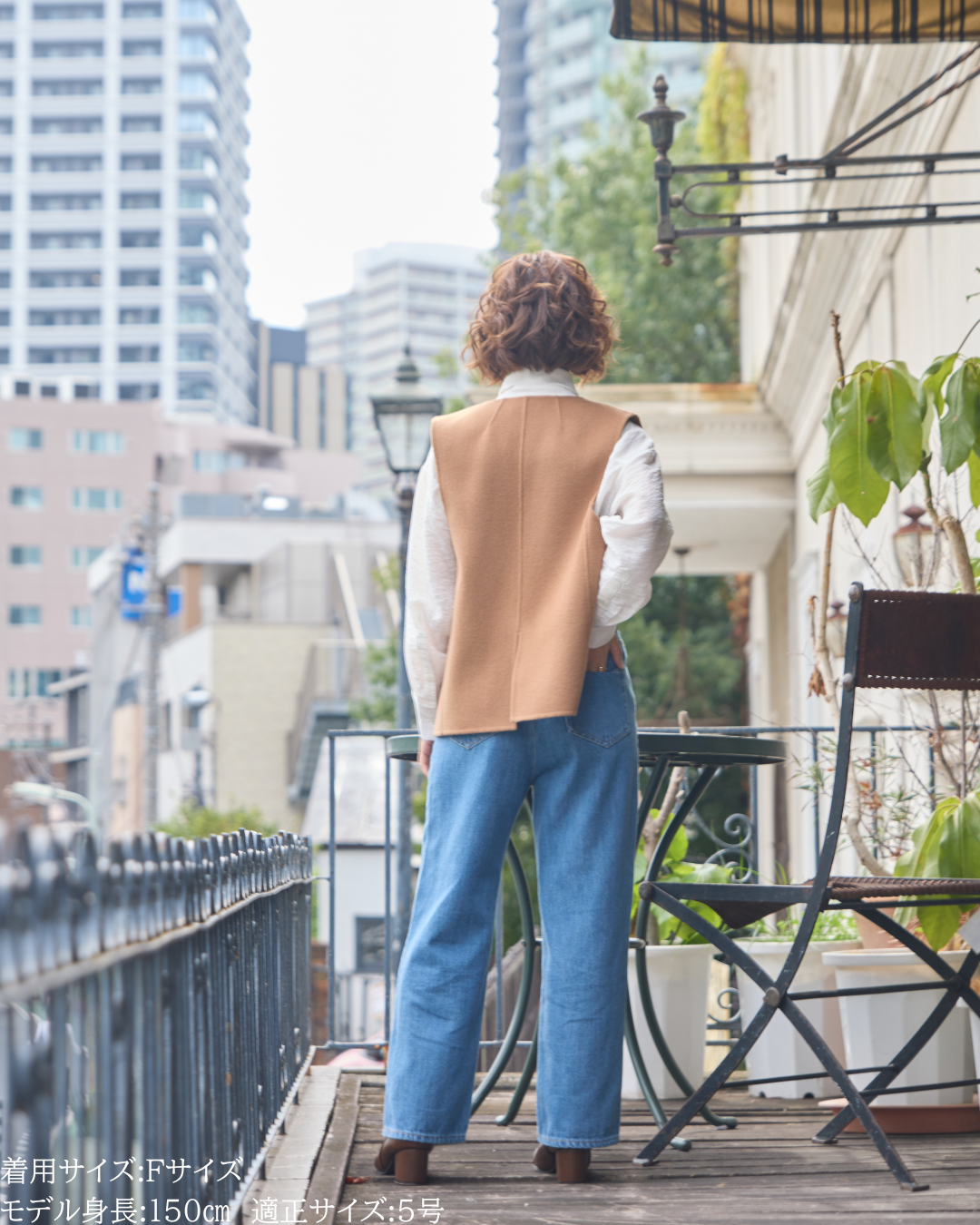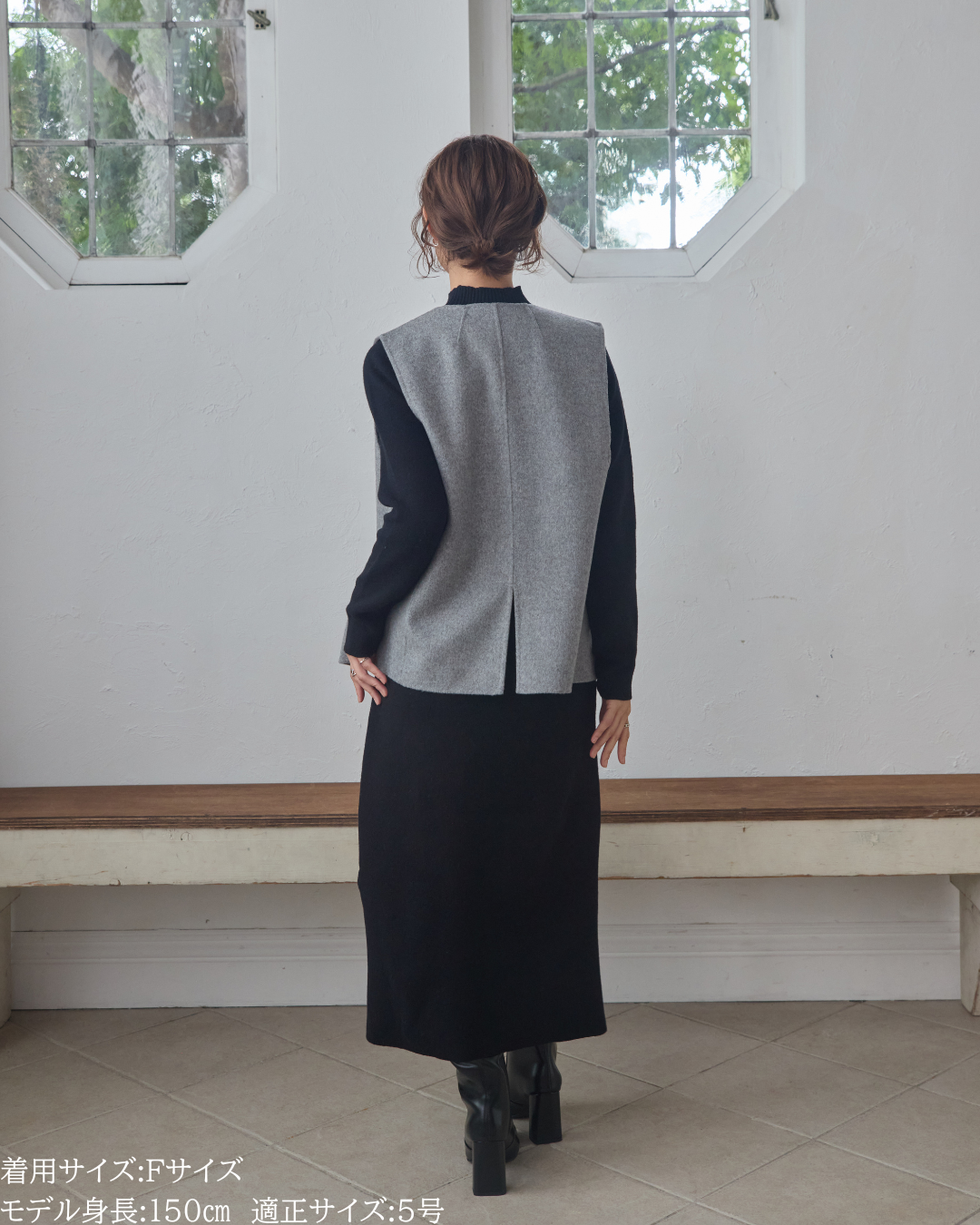 ベストは後ろにスリットを入れることで抜け感をプラスし、スッキリ見えを叶えます。
