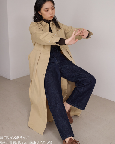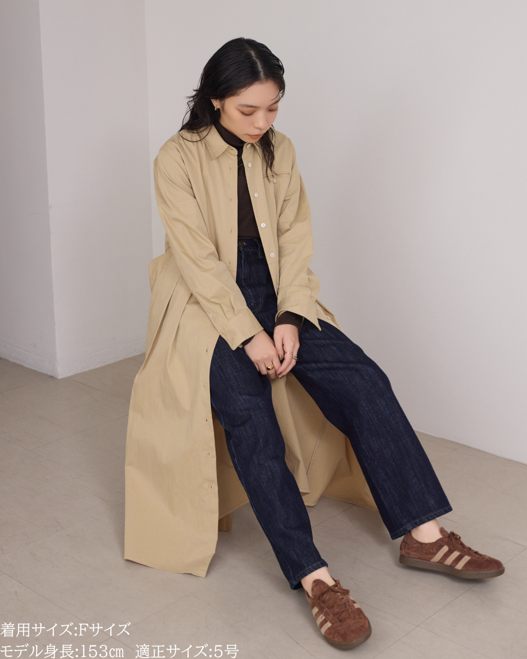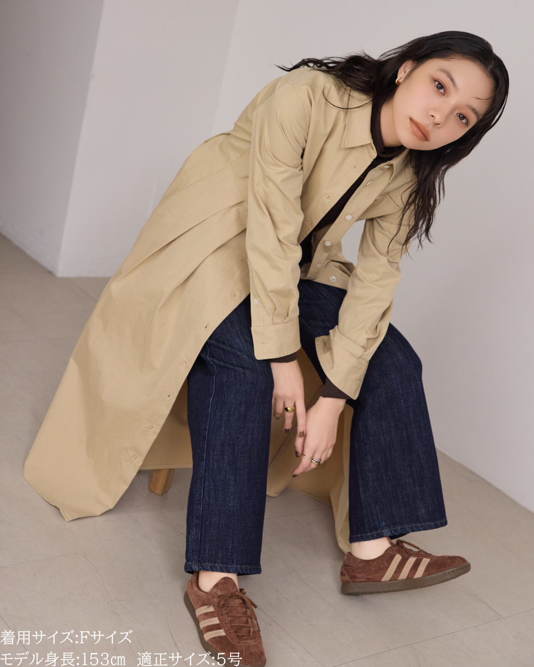 小柄さんにもバランスよく馴染む、程よい厚みと落ち感が魅力です。