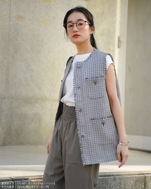 ノーカラーセミロングジレ(ブラック・ベージュのみセットアップ可能)