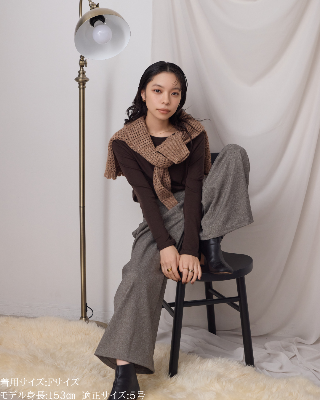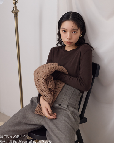 抜け感がある編地なので、インナーとのコーディネートをお楽しみくださいませ。