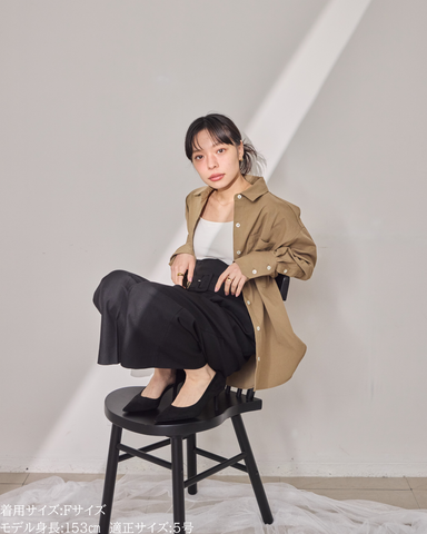 裾はラウンドさせることで、自然と縦のラインが生まれ、脚長効果も◎横から見たときのシルエットにもこだわり、どの角度から見ても美しく映える一枚に。