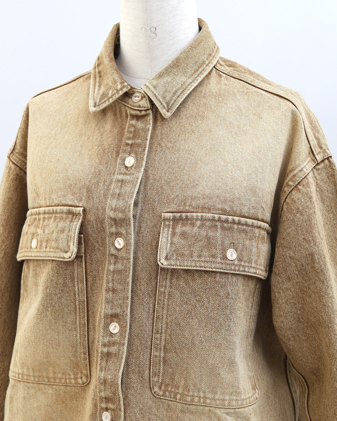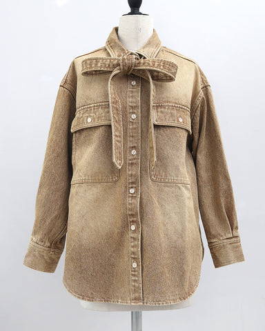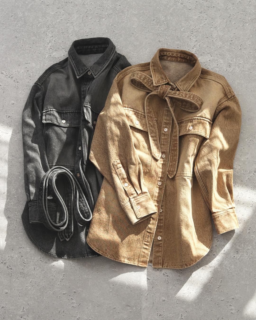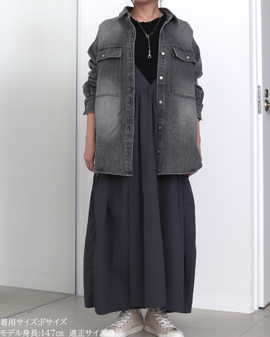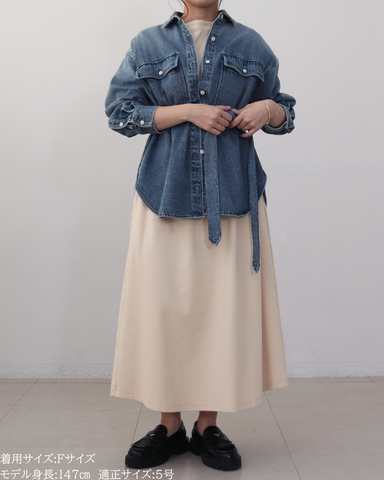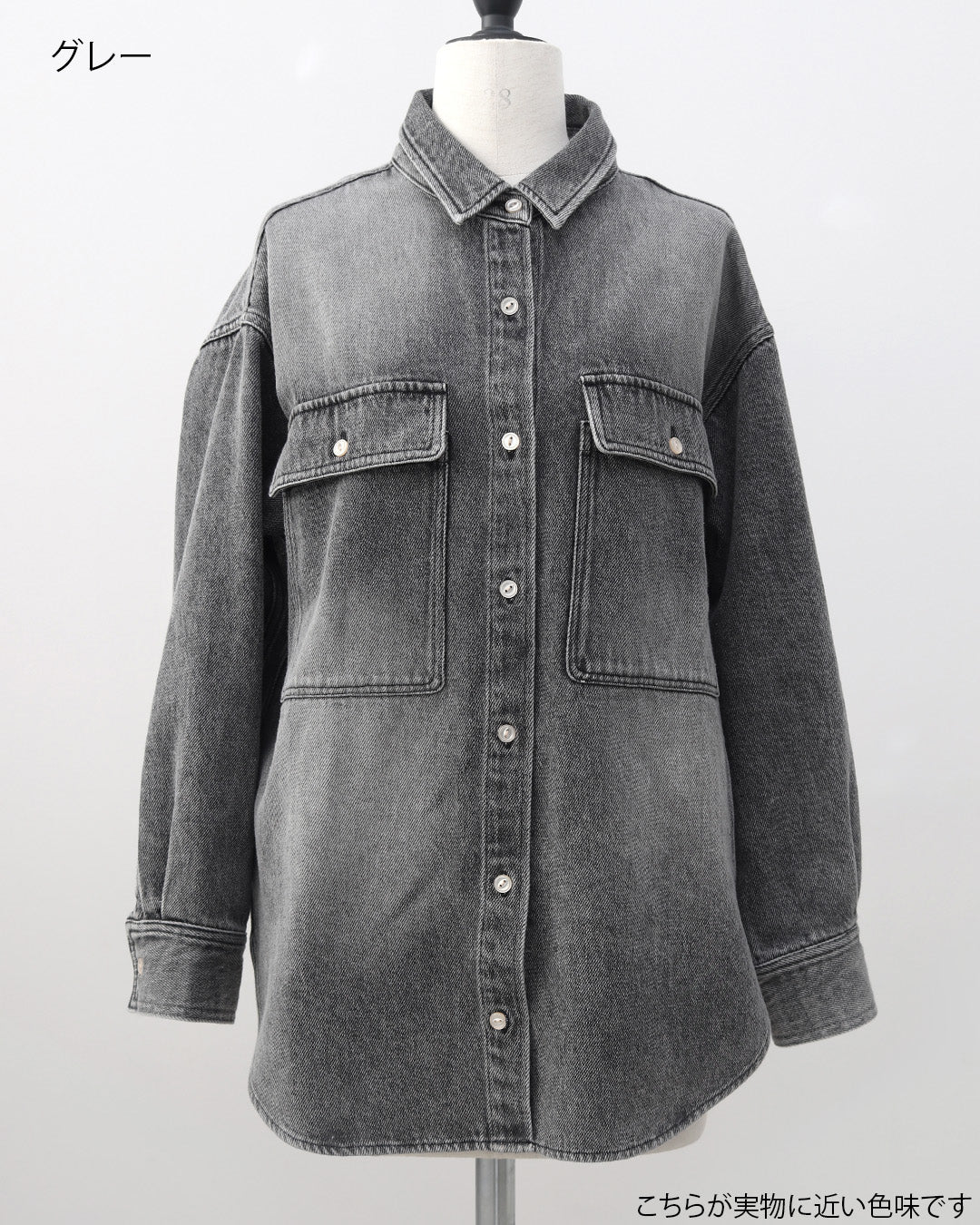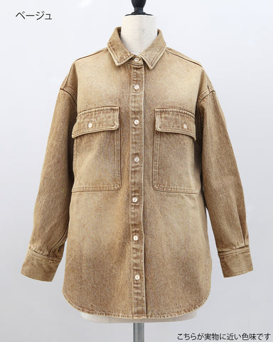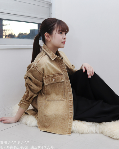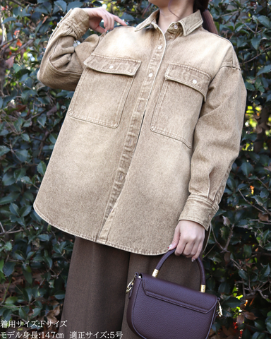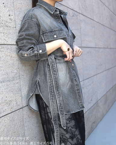 長時間着ても窮屈感がなく、デイリー使いにもぴったり。★ブルー(再販)程よく色落ちしたウォッシュ加工で、デニム特有の硬さを感じにくいブルー。カジュアルすぎず、きれいめコーデにも自然になじむ万能カラー。季節を問わず着回せて、羽織としても主役としても活躍する定番の一色です。★グレー(新色)今年らしいニュアンス感が魅力のグレー。デニム素材でもラフになりすぎず、落ち着いた印象に仕上がるのがポイント。モノトーンコーデはもちろん、春らしい淡色アイテムとも相性が良く、大人っぽさとトレンド感を両立した新色です。★ベージュ(新色)柔らかく肌なじみの良いベージュは、春を意識したコーデに欠かせないカラー。ウォッシュ加工を施すことで、甘くなりすぎず程よくカジュアルダウン。ホワイトやアイボリー、淡色ボトムと合わせるだけで季節感のある軽やかなスタイリングが完成します。