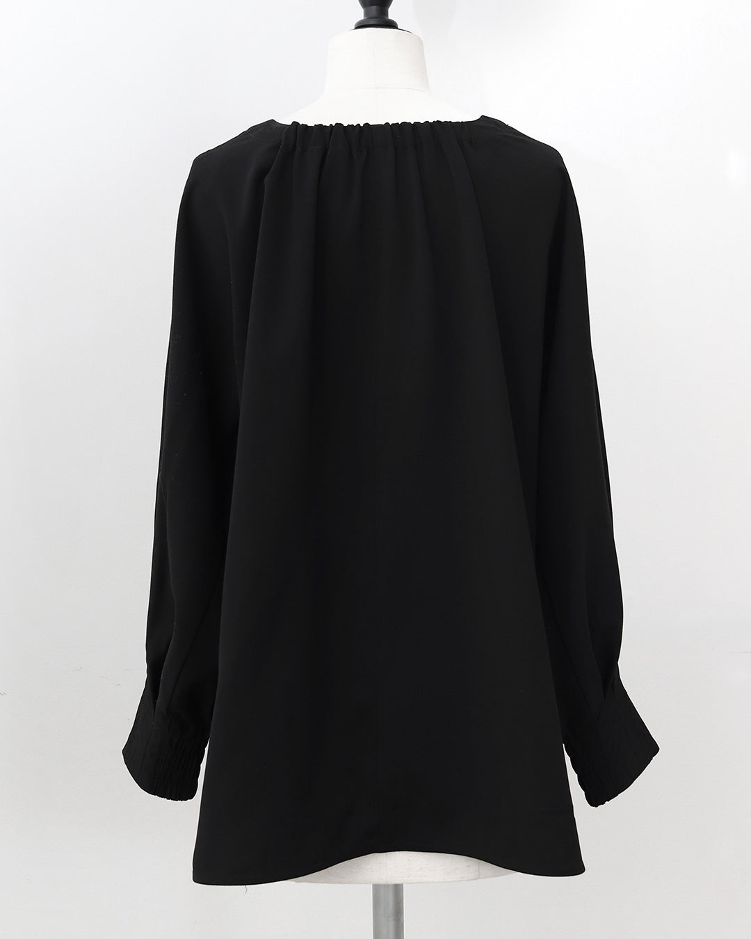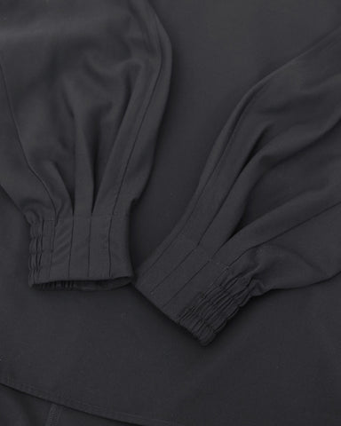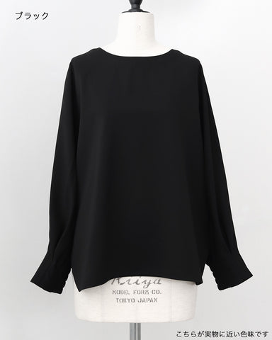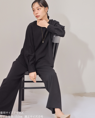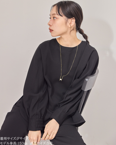後ろネックはゴム仕様にし、首元に沿う設計できちんと感もキープ。袖口にはシャーリングを施し、たくし上げも楽々。