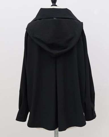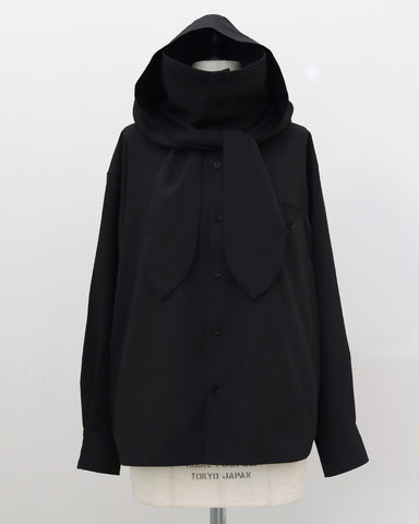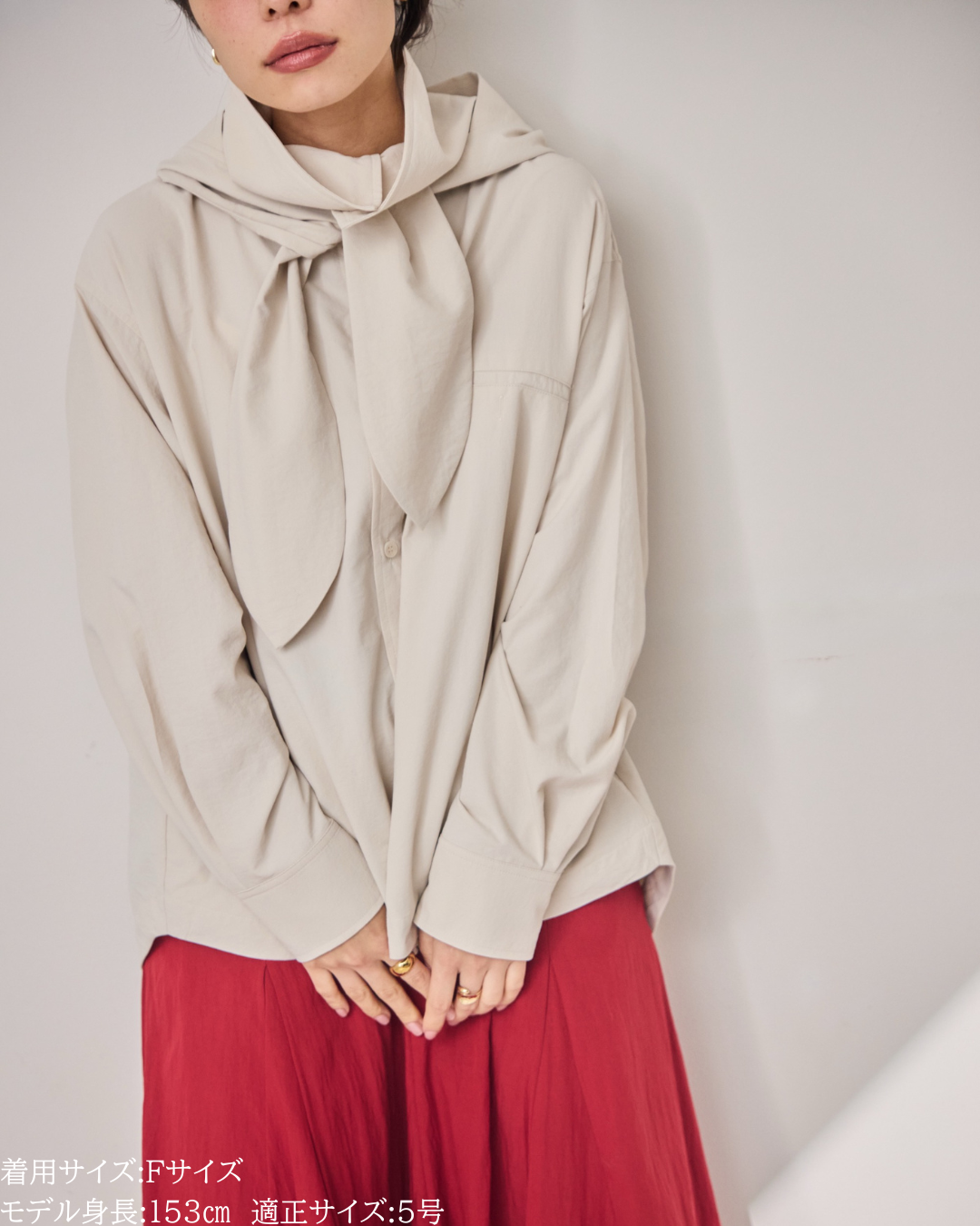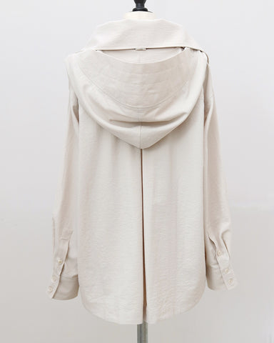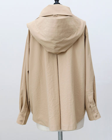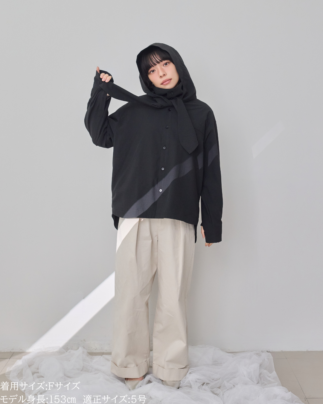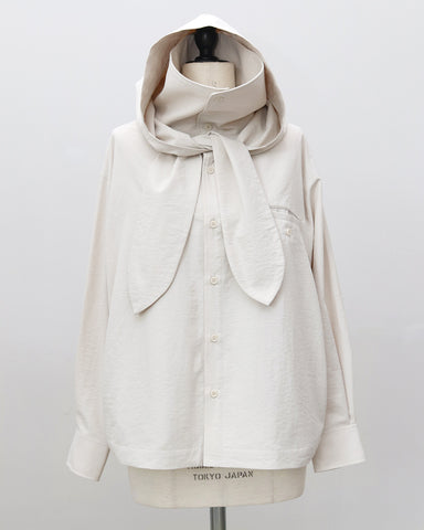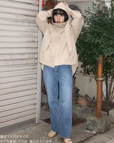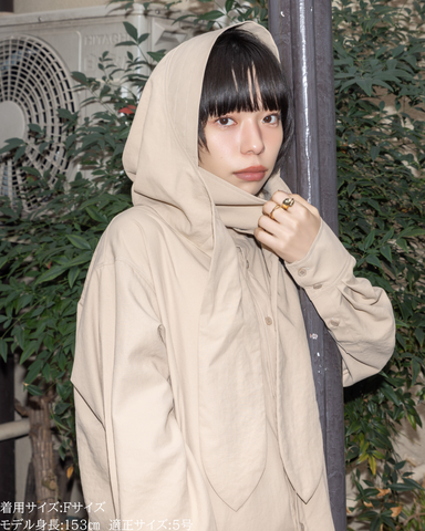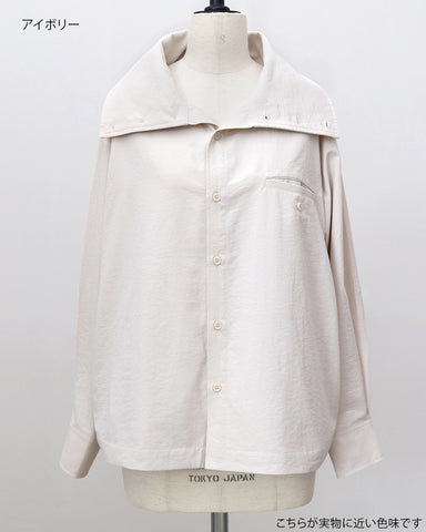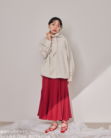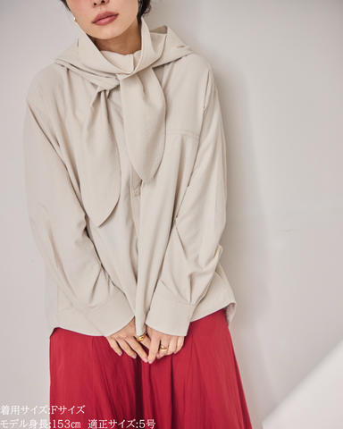 「UV対策」に見えない、シャツ見えデザインのUVカットシャツ。ブルゾンやカットソーパーカーが主流のUVアイテムの中で、“いかにもUV対策”にならないデザイン性を大切にした一着です。フードはドットボタン仕様で取り外し可能。フードを付ければ、つば付きで顔まわりまでしっかり日除けができ、紫外線対策としても実用性抜群。フードを外して衿元を開ければ、ラフに着られるブラウス見えシャツとして着用可能。UV専用アイテムとしてだけでなく、普段着としても自然に着回せるデザインに仕上げています。・リボンは結んでも垂らしても◎・襟を立てれば首元までしっかりカバー・袖にはタック入りで、さりげなくデザイン性アップ・胸元のダミーポケットが視線を上に集め、スタイルアップ効果・さらに両脇ポケット付きで、機能面も優秀