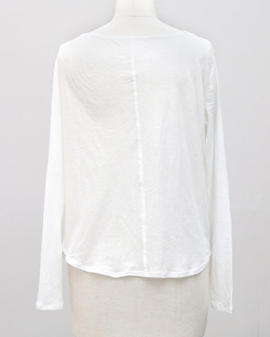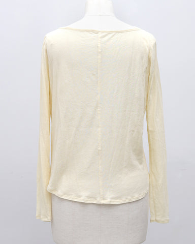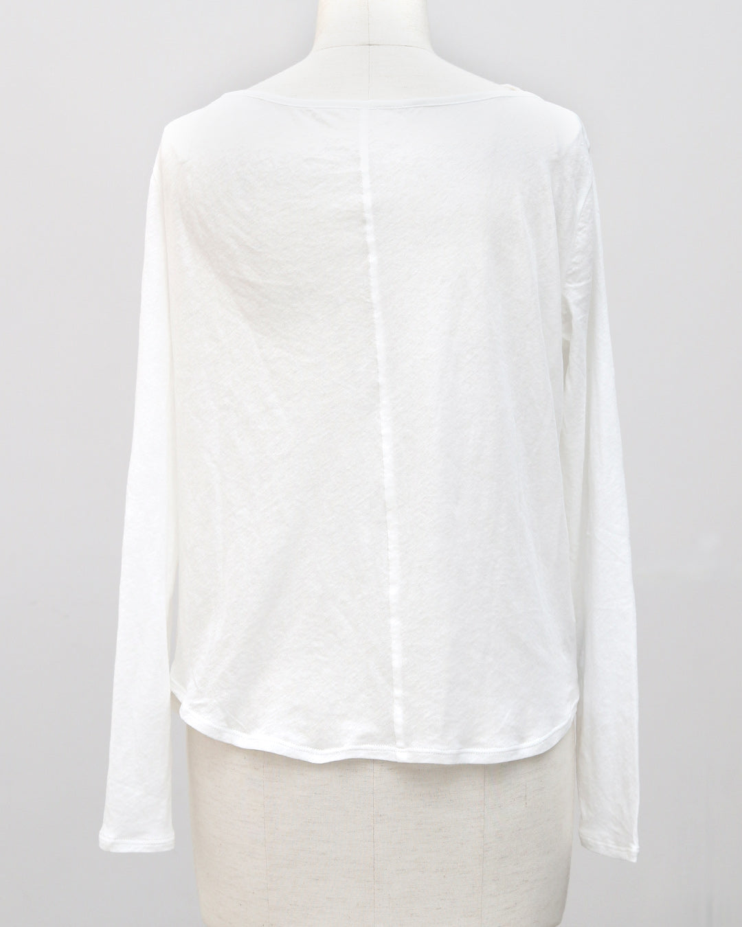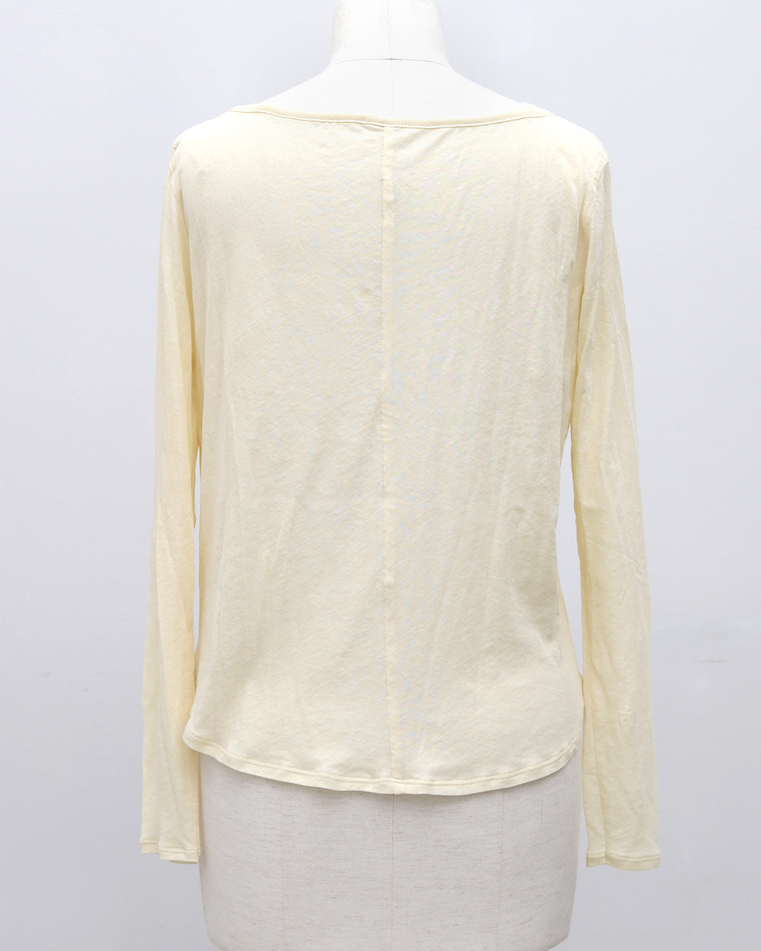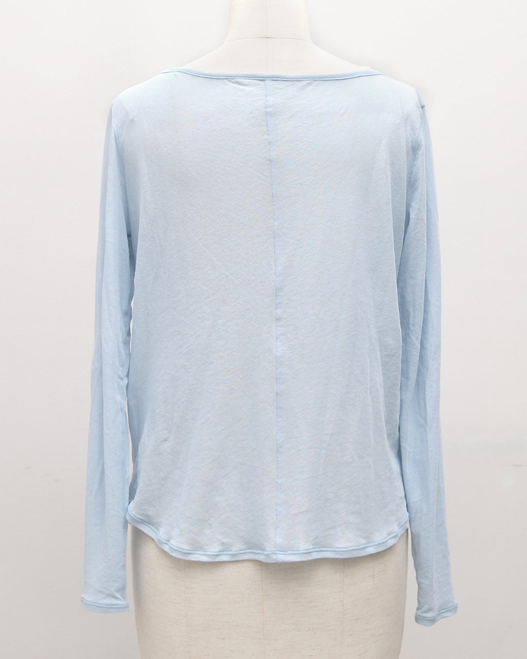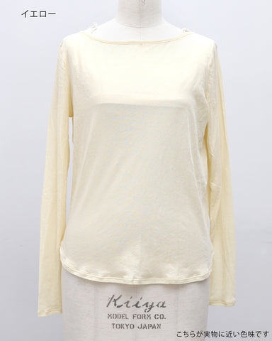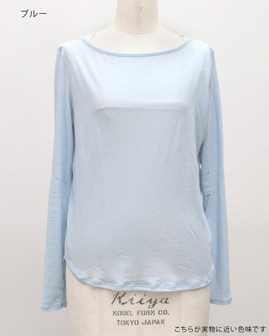 素材には**超長綿100%**を使用。超長綿とは、繊維一本一本が非常に長く、細く、均一で、高品質なコットンのことをいい、一般的な綿素材に比べて毛羽立ちが少なく、なめらかで上品な表面感が特徴です。繊細な糸によって生まれる上品な透け感と、やわらかくなめらかな肌触りで、素肌に直接触れても心地よい着用感。綿100%素材のため通気性・吸湿性にも優れており、汗をしっかり吸収するので、長袖でも蒸れにくく真夏でも快適に着用できます。薄手なのに高見えし、シアー素材特有の“チープさ”を感じさせない、大人のための上質素材です。
