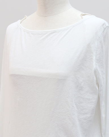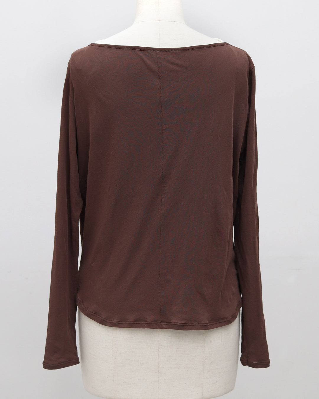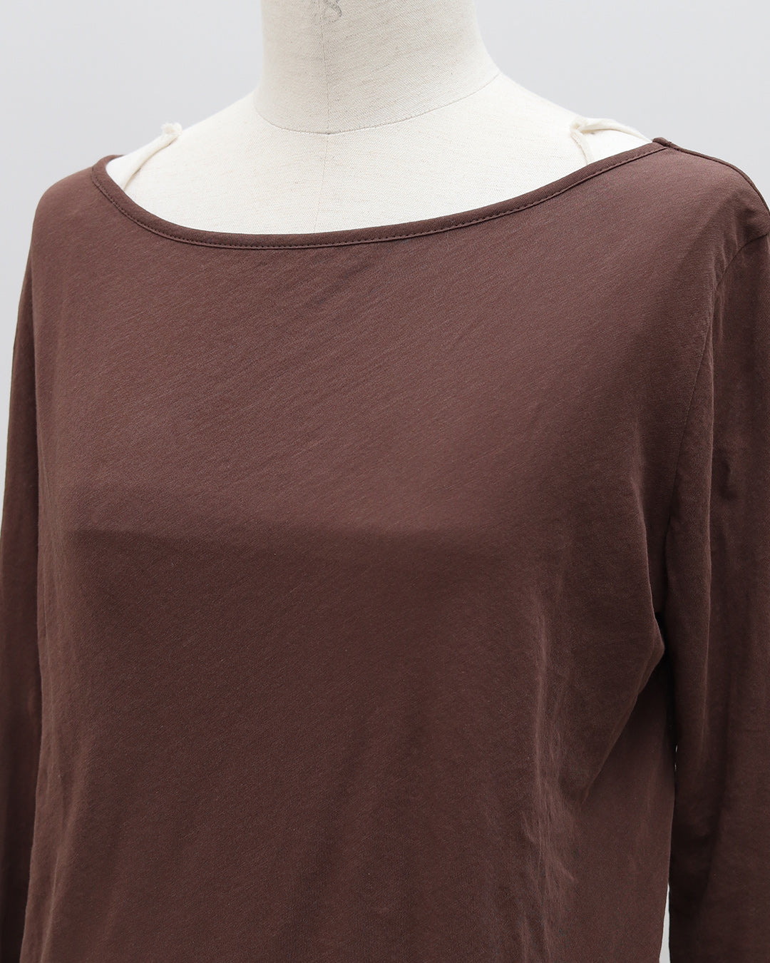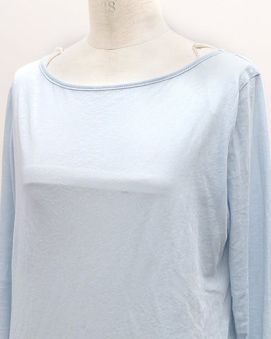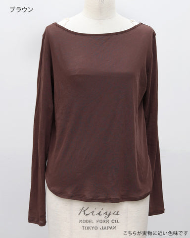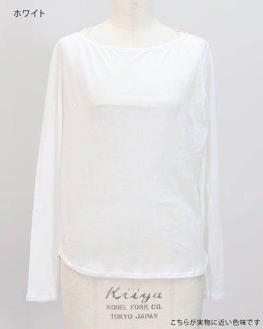 軽やかな透け感が、コーディネートに抜け感と大人の余裕をプラスするコットンシアーカットソー。繊細な素材感でありながら、カジュアルにもきれいめにも自然になじみ、インナーにも主役にもなれる万能な一枚です。程よくゆとりのあるシルエットで、肌に張り付かず風通しもよく、長袖でも涼しく着られる快適な着心地。“透けすぎない、でも重くならない”絶妙なシアー感が、大人のレイヤードスタイルを品よく引き立ててくれます。色違いで重ねて、袖口や首元から配色をちらっと見せるレイヤードスタイルもおすすめ。1枚で着ても、重ねても、着回しても成立する汎用性の高さで、季節を問わず一年中活躍してくれる一枚です。デコルテラインを美しく見せるボートネック仕様で、顔まわりをすっきりと上品な印象に。首元が詰まりすぎない設計のため、インナーとのレイヤードも自然に決まります。身幅はコンパクトすぎず、ルーズすぎない絶妙なバランス設計。小柄さんでも着られている感が出にくく、縦ラインをきれいに見せてくれるシルエットです。裾は緩やかなラウンドヘム仕様で、アウトスタイルでもインスタイルでもバランス良く着用可能。重ね着してももたつかず、レイヤードしてもシルエットが崩れにくい、小柄さん仕様のサイズ設計になっています。