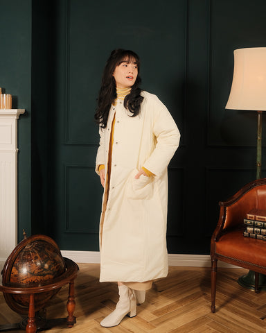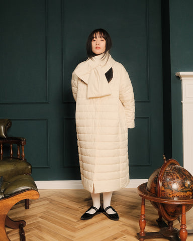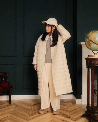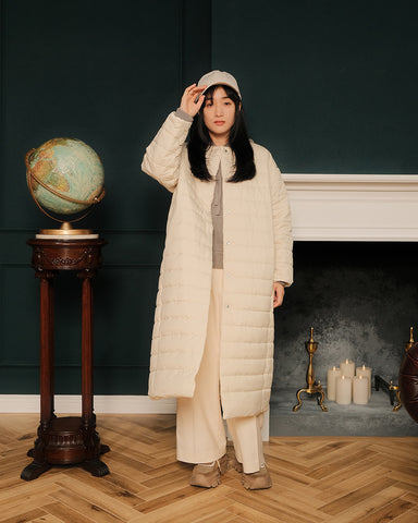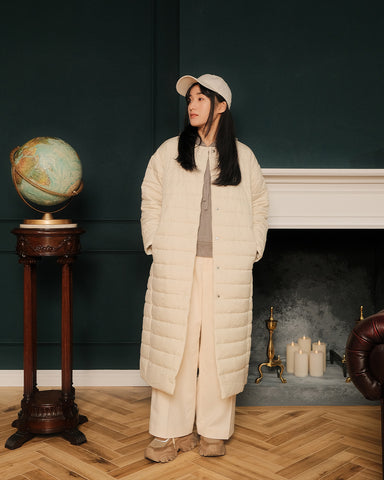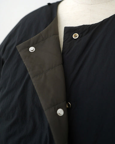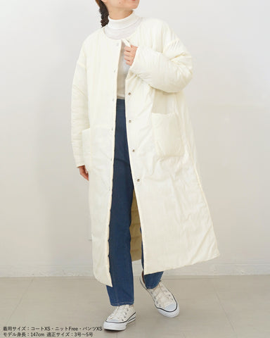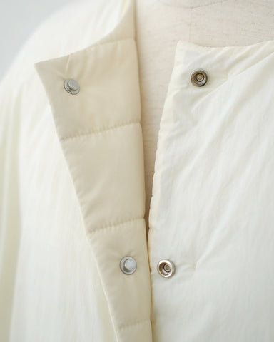 軽くてあたたかく、表情の異なるフラットな面とキルティング面を両方お楽しみいただけるリバーシブルのライト中綿コートが登場いたします。