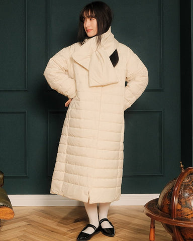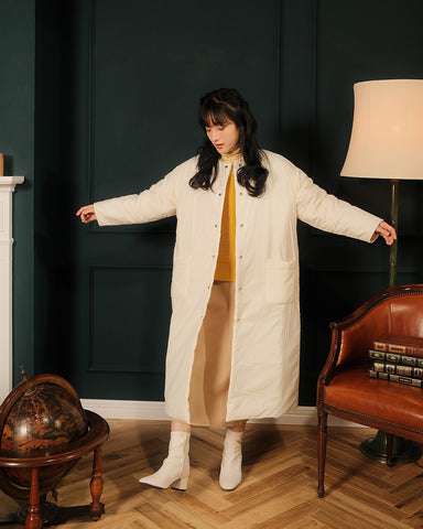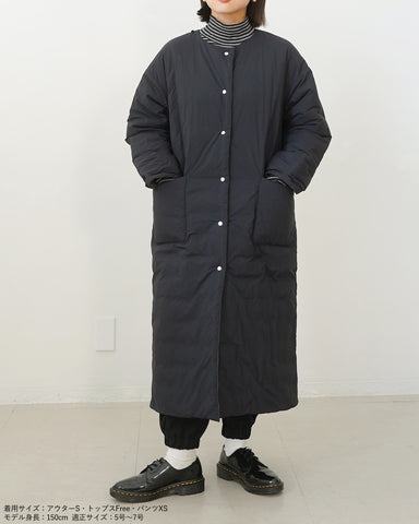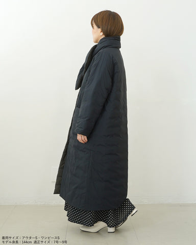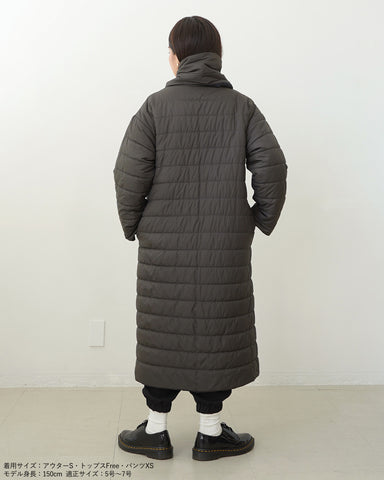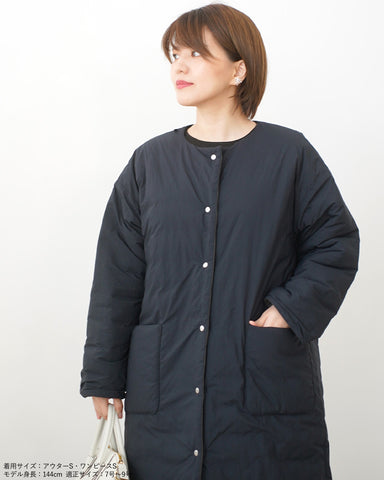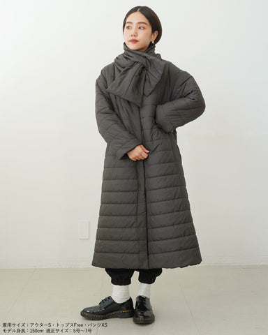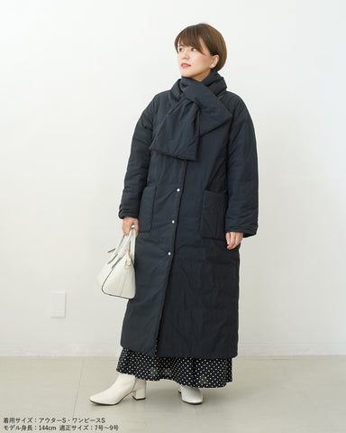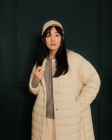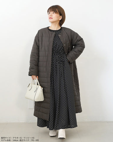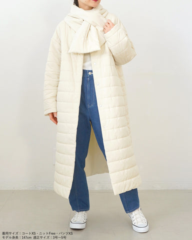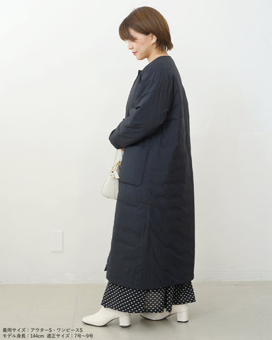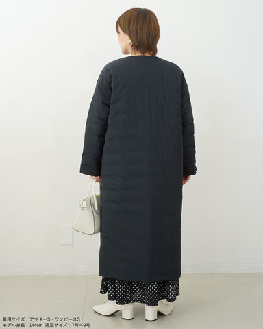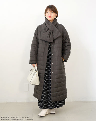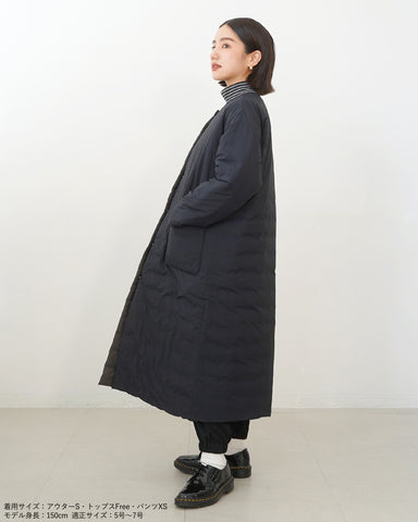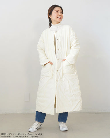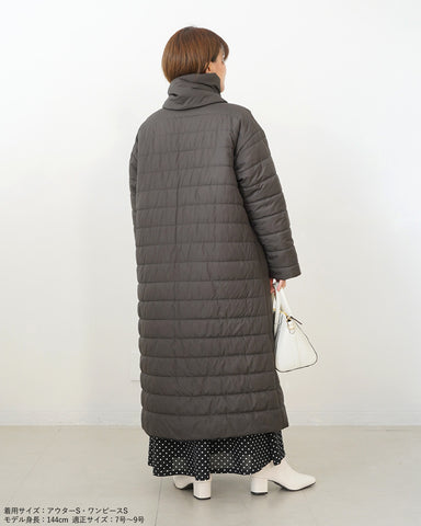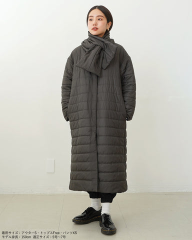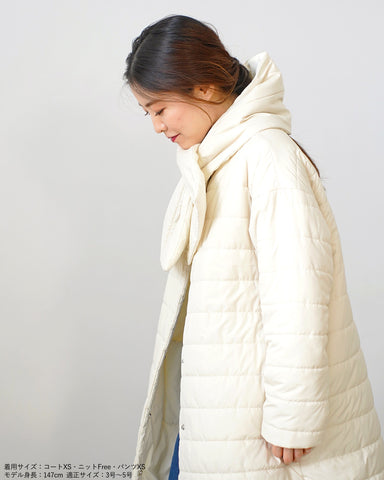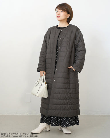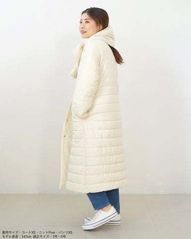 小柄女性が普通サイズの中綿コートを着るとボリュームが出過ぎて丸みのある印象になりがちですが、こちらは薄手の中綿を使いボリュームを抑えているので、着膨れの心配もありません。