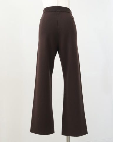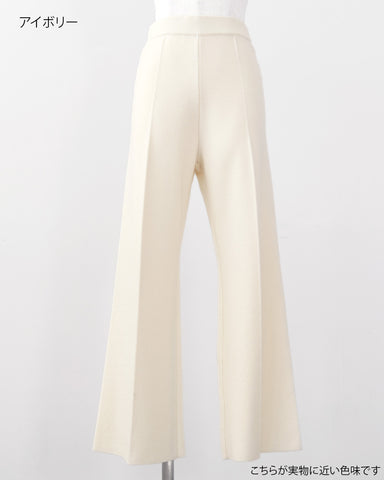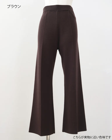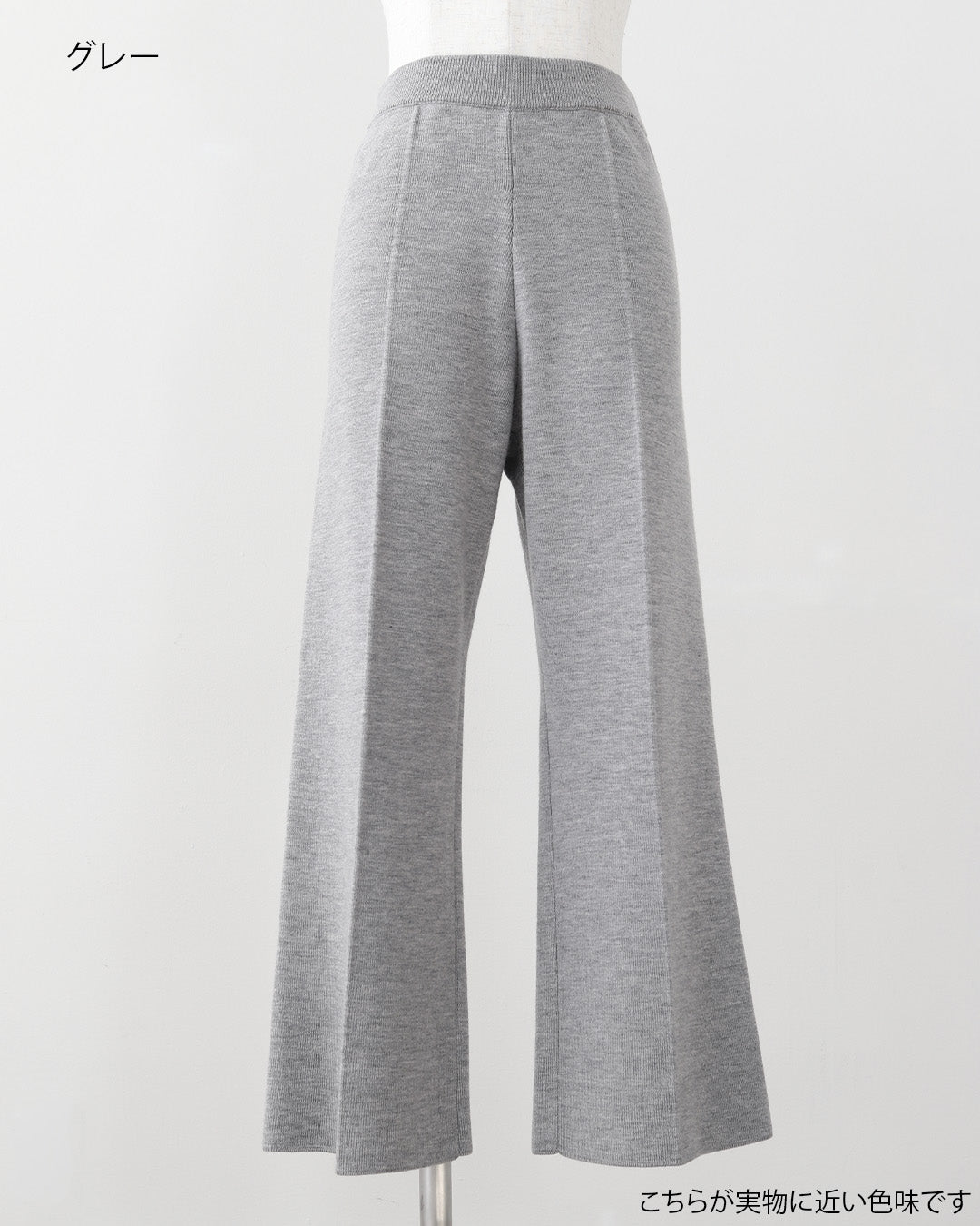 美脚見せにこだわったウールフレアニットパンツ。ウール100%なのに、脚のラインを拾いにくい“しっかり肉感”の編み地で、ほっこり感がありながらも上品に見える表面感に仕上げました。深めの股上が腰まわりを包み込み安心感のある穿き心地。膝位置を高めに設定し、そこからほんのり広がるフレアシルエットで脚を長く、きれいに見せる黄金バランスをとことん追求。小柄さんには特に嬉しい、センタープレス見えの編み地を施すことで縦ラインが強調され、スタイルアップが叶います。どんなトップスにも馴染む、万能&美脚シルエットの一本です。