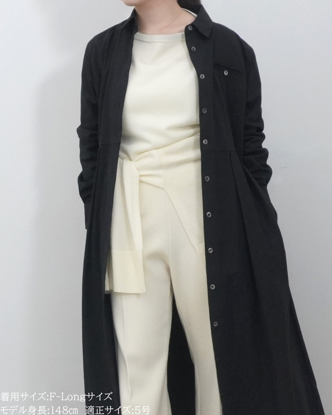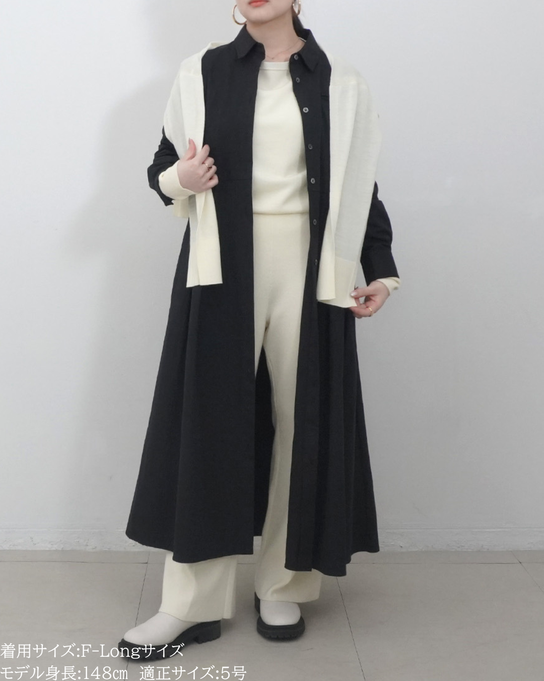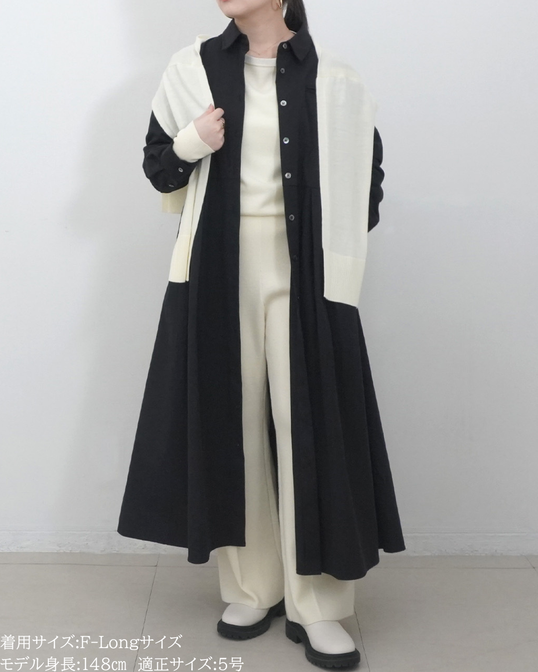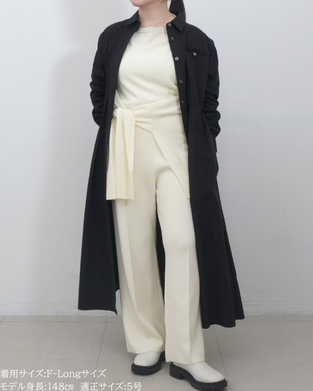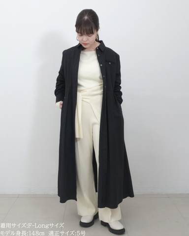 (F-Long/右)着丈は床に1、2cmぐらい引きずる長さで、フラットシューズでスレスレ丈になりました。