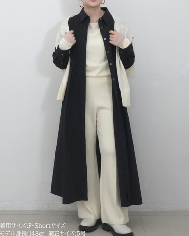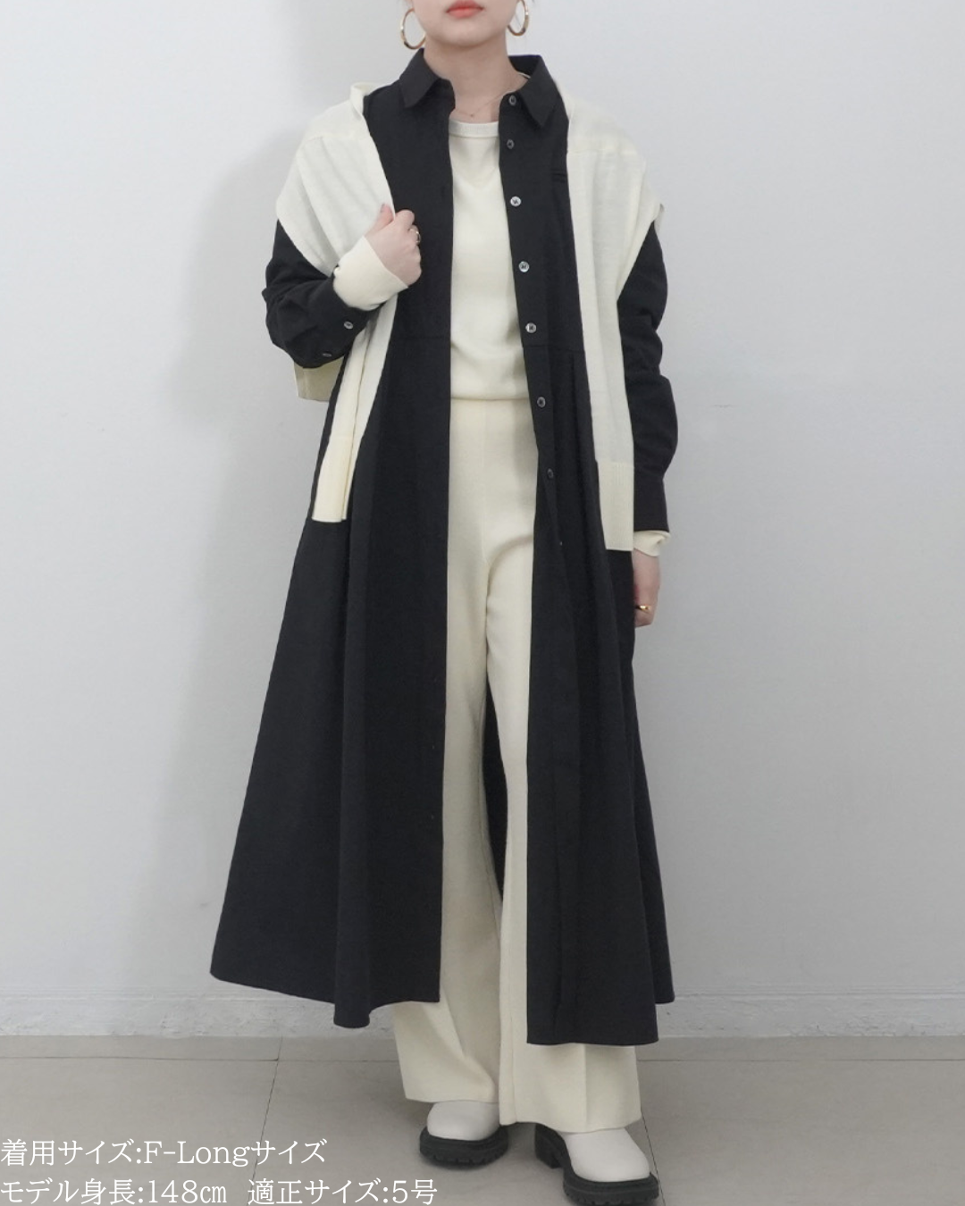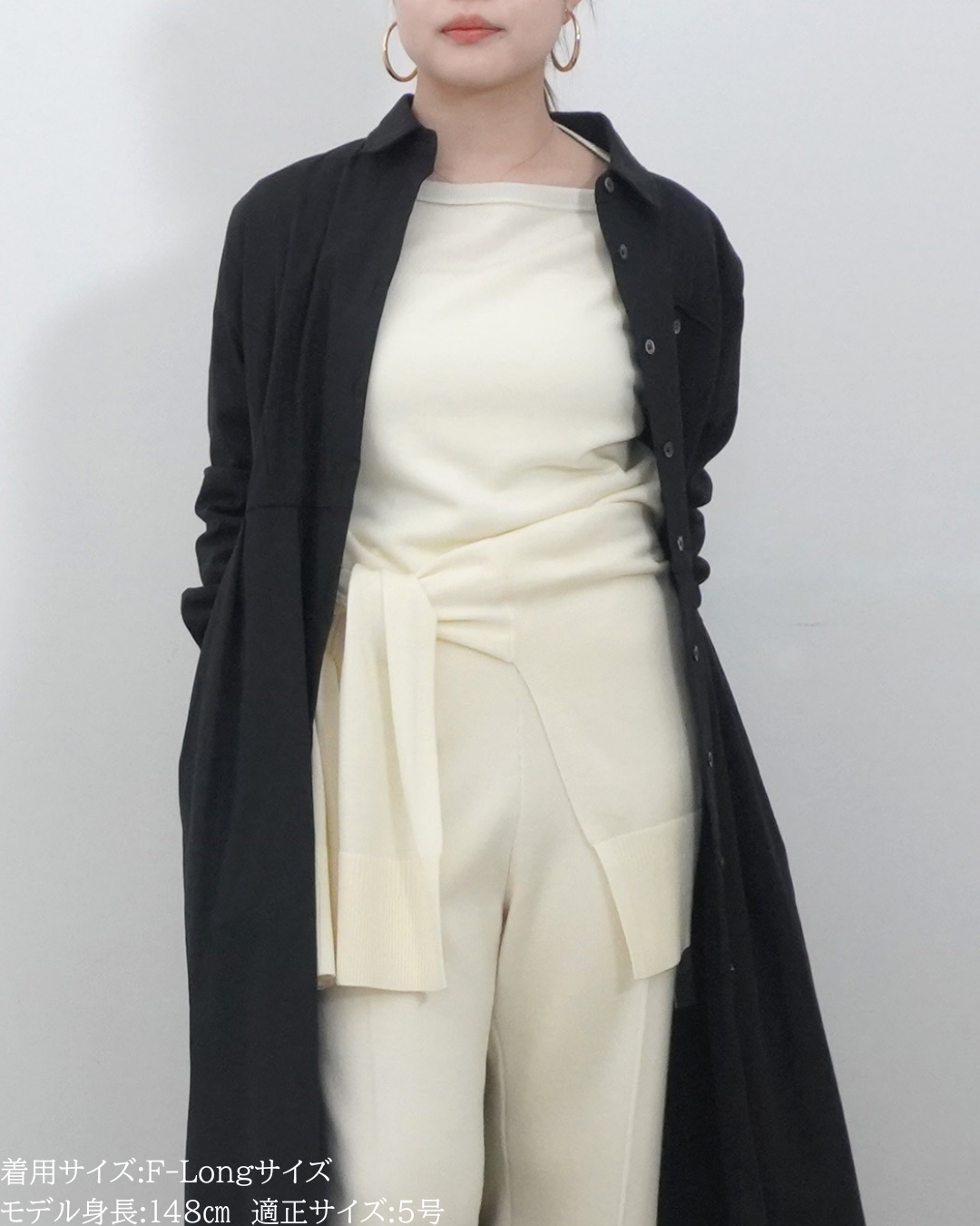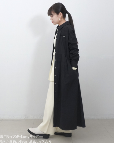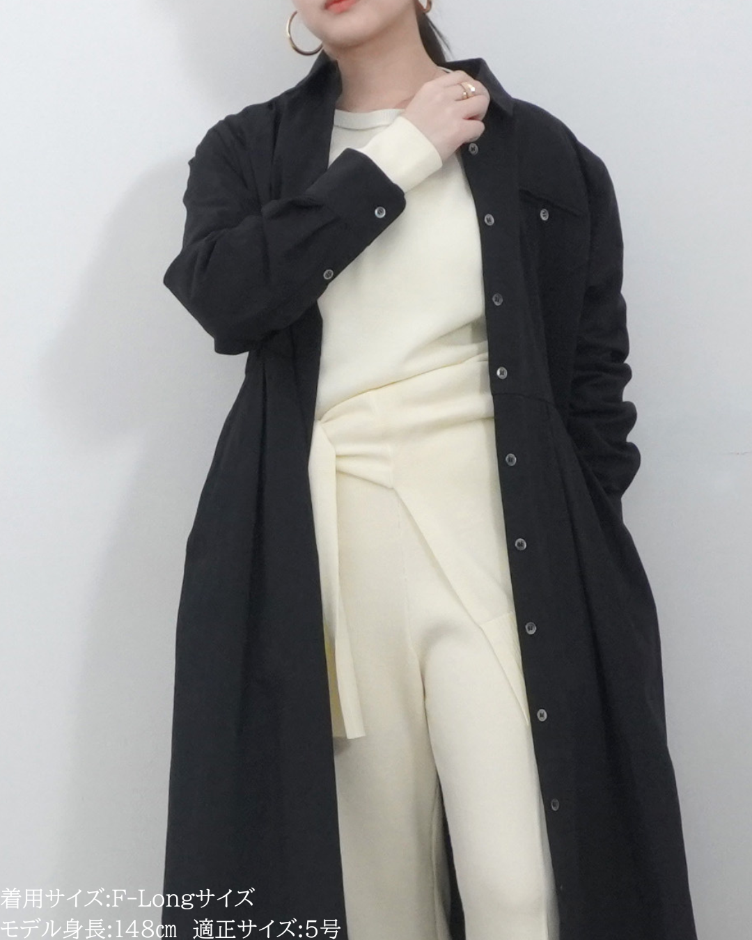 (F-Long/右)着丈は床に1、2cmぐらい引きずる長さで、フラットシューズでスレスレ丈になりました。
