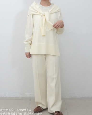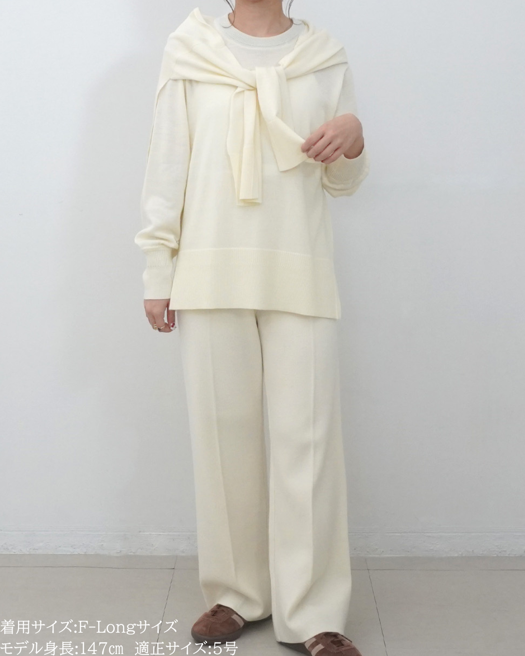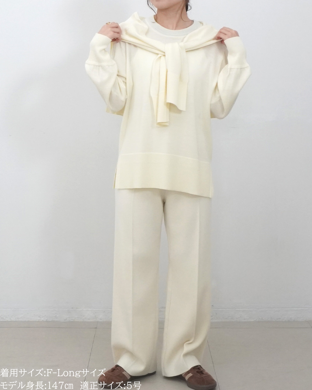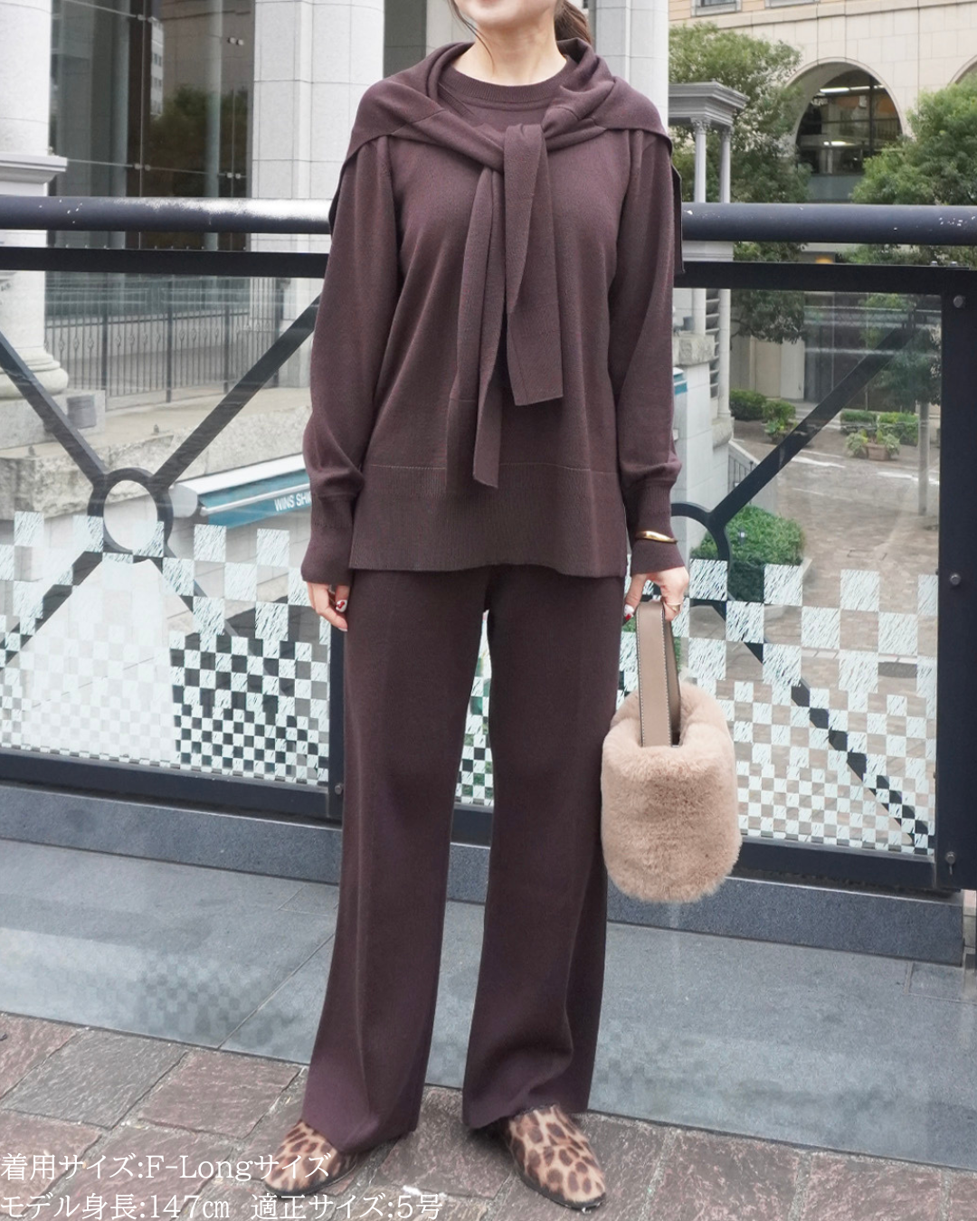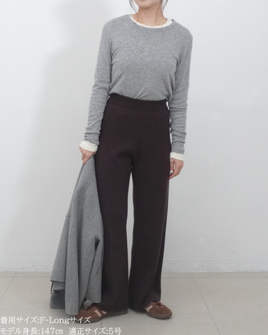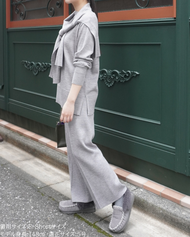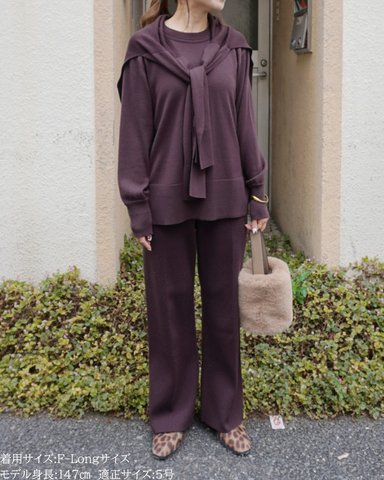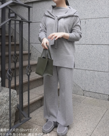 どんなトップスとも好バランスが取りやすく、冬のワードローブで大活躍。ざっくりニットを合わせたカジュアルスタイルはもちろん、レイヤードコーデにもすっと馴染む着回し力の高さが魅力です。同時発売のクルーネック/ボートネックウールニットと合わせれば、“小柄さんが憧れるニットのセットアップ”が完成。一気に洗練されたムードに。1本あればコーデの幅がぐっと広がる、冬の万能フレアニットパンツです。