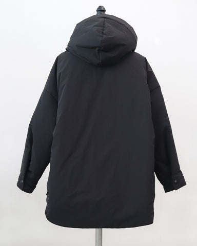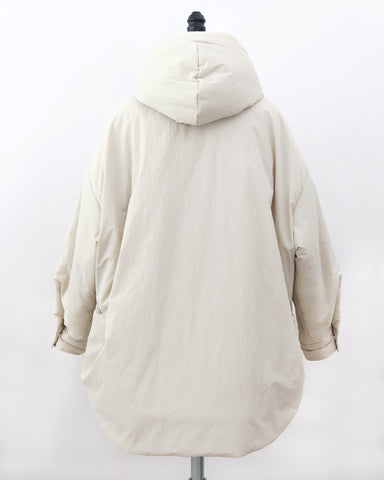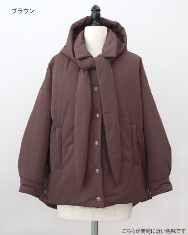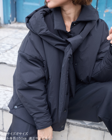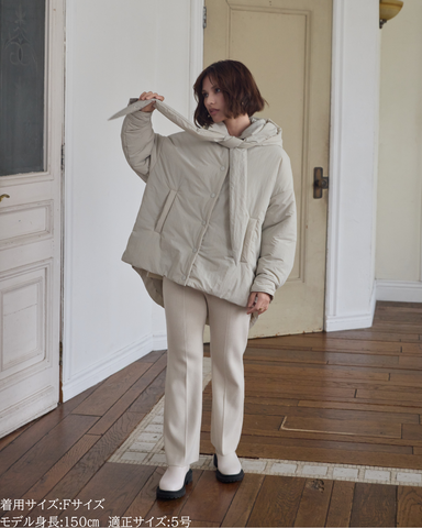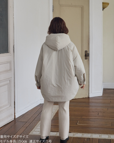 小顔効果を狙ったサイズ感のフードには中綿入りで、防寒性もばっちりです。■Fablic表地は軽くて丈夫なナイロン100%、裏地はなめらかで着心地の良いポリエステル100%。