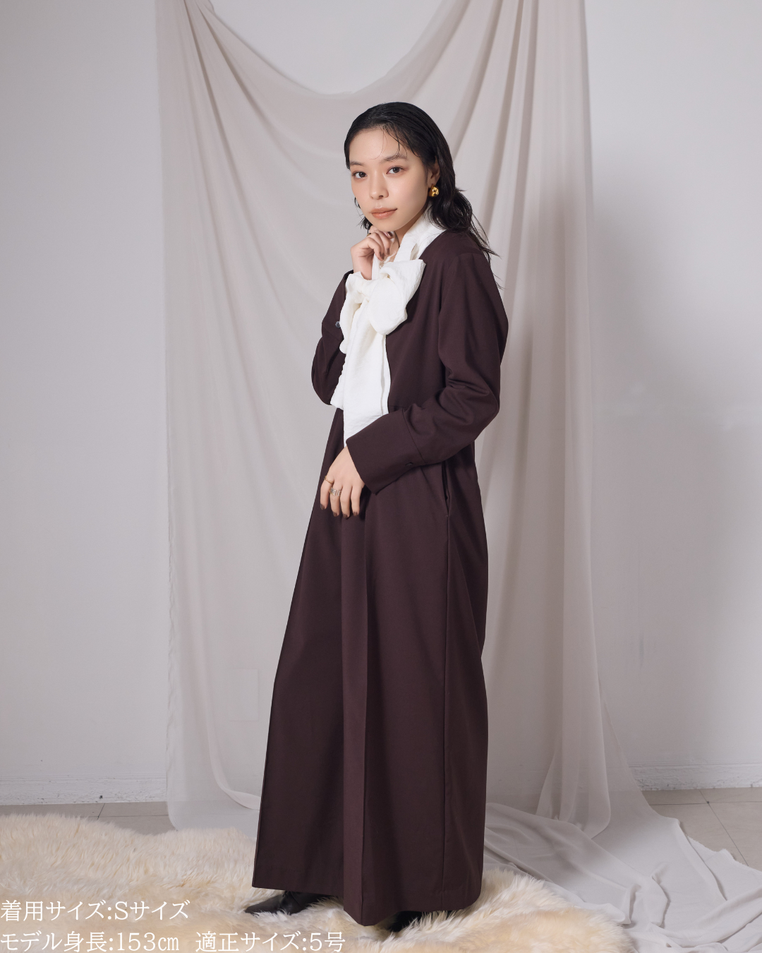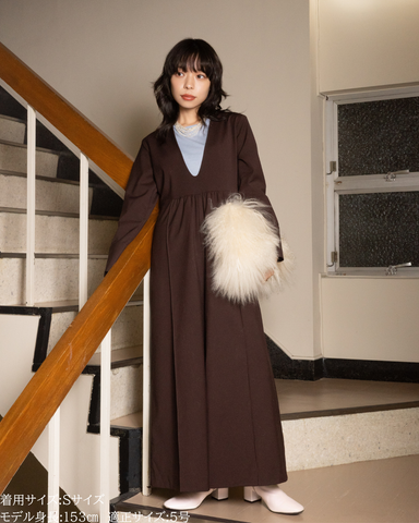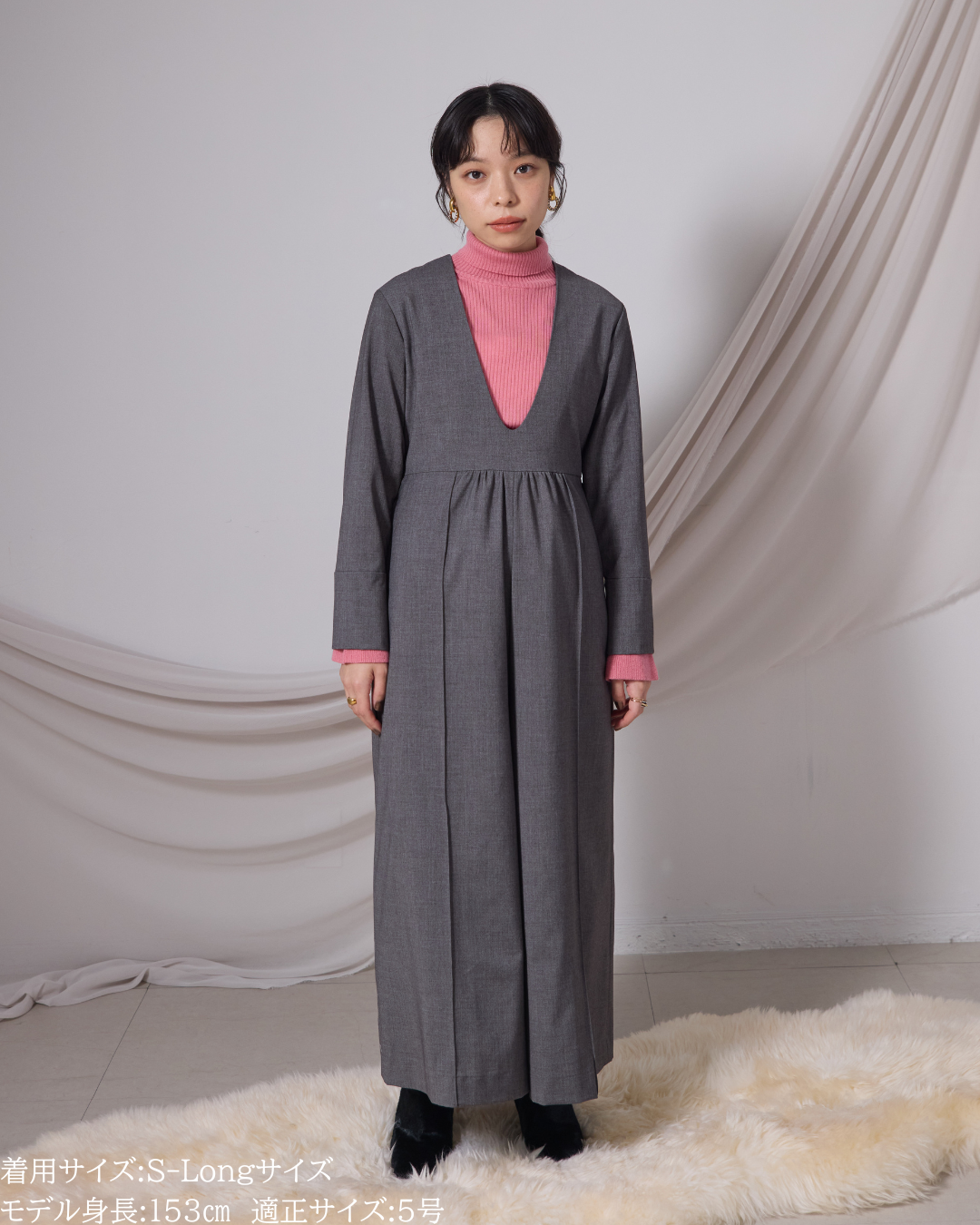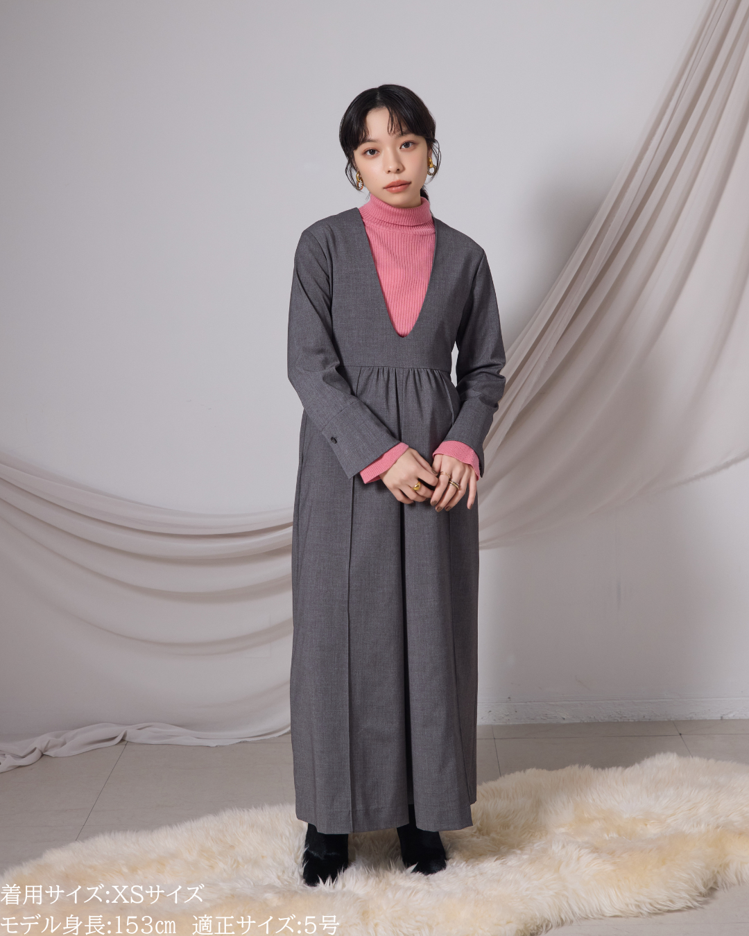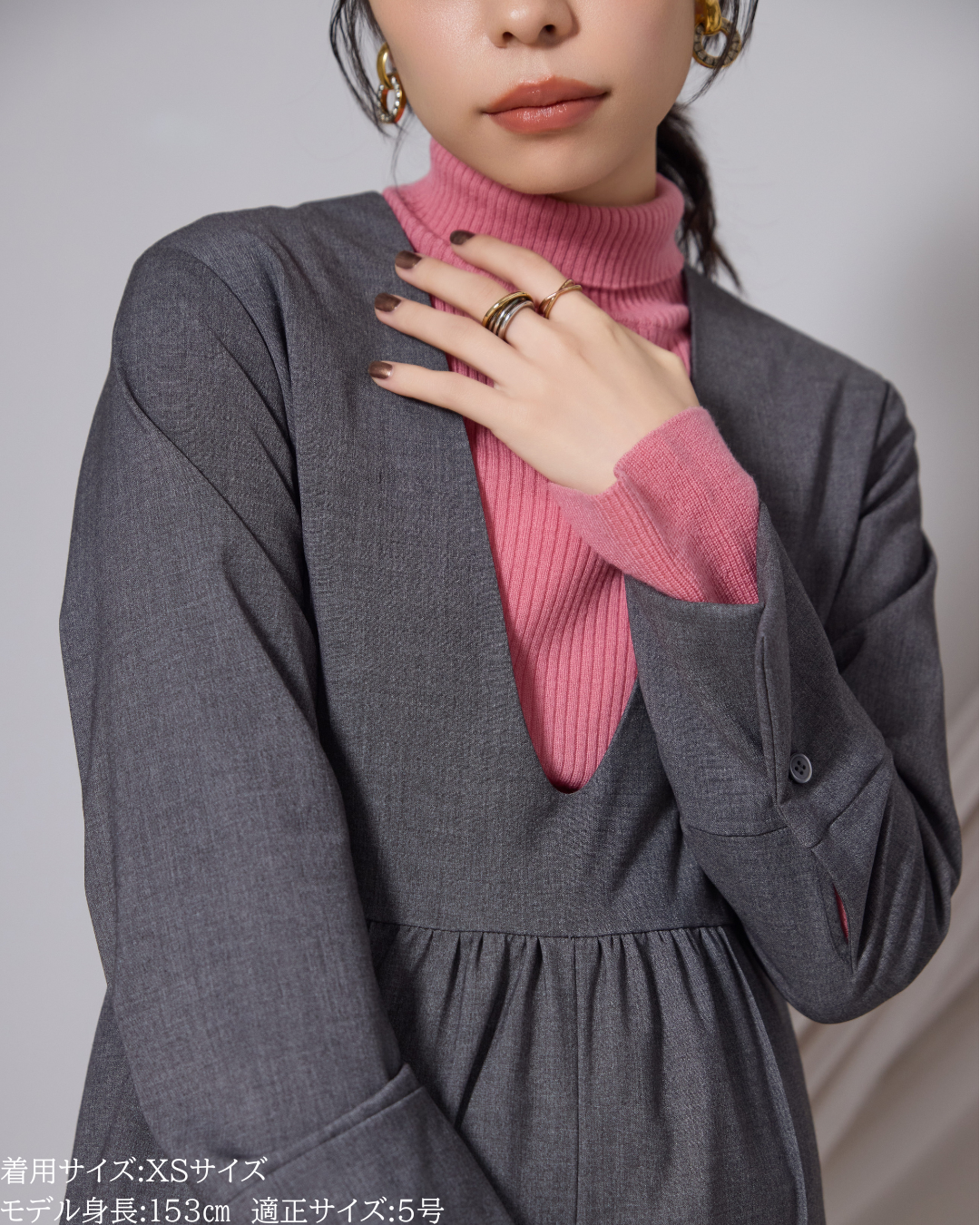重ねるアイテム次第でロングシーズン活躍すること間違いなし。深めのVネックを活かして、秋冬はウールのクルーネックニットやハイネックニットトップスをインナーに。春先にはシアー素材やコンパクトTシャツを合わせて軽やかに。足元はパンプスやブーツで上品に、スニーカーでカジュアルダウンも◎アウターを変えるだけで印象がガラッと変わるので、通勤からお出かけまで幅広く着回せる一枚です。