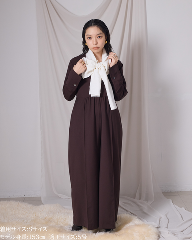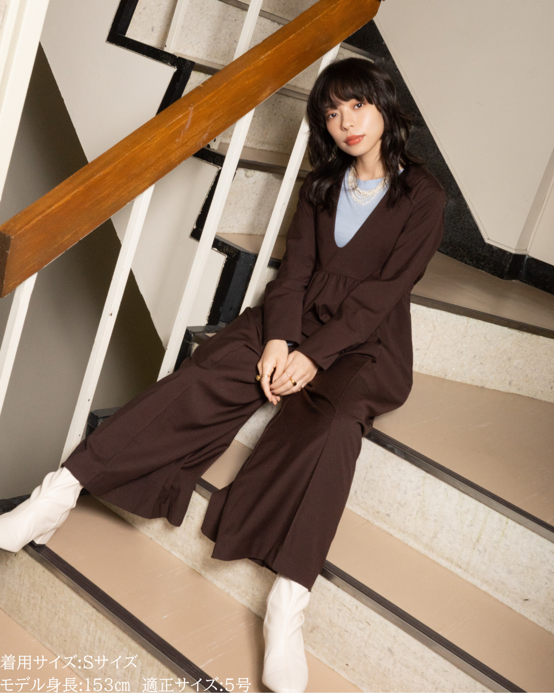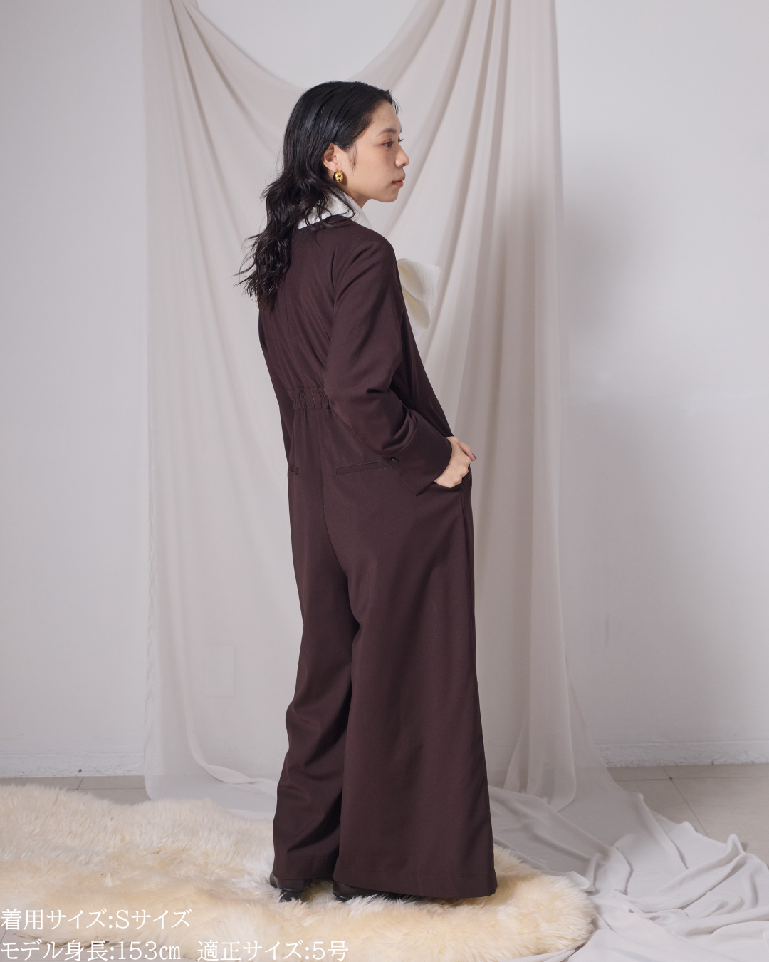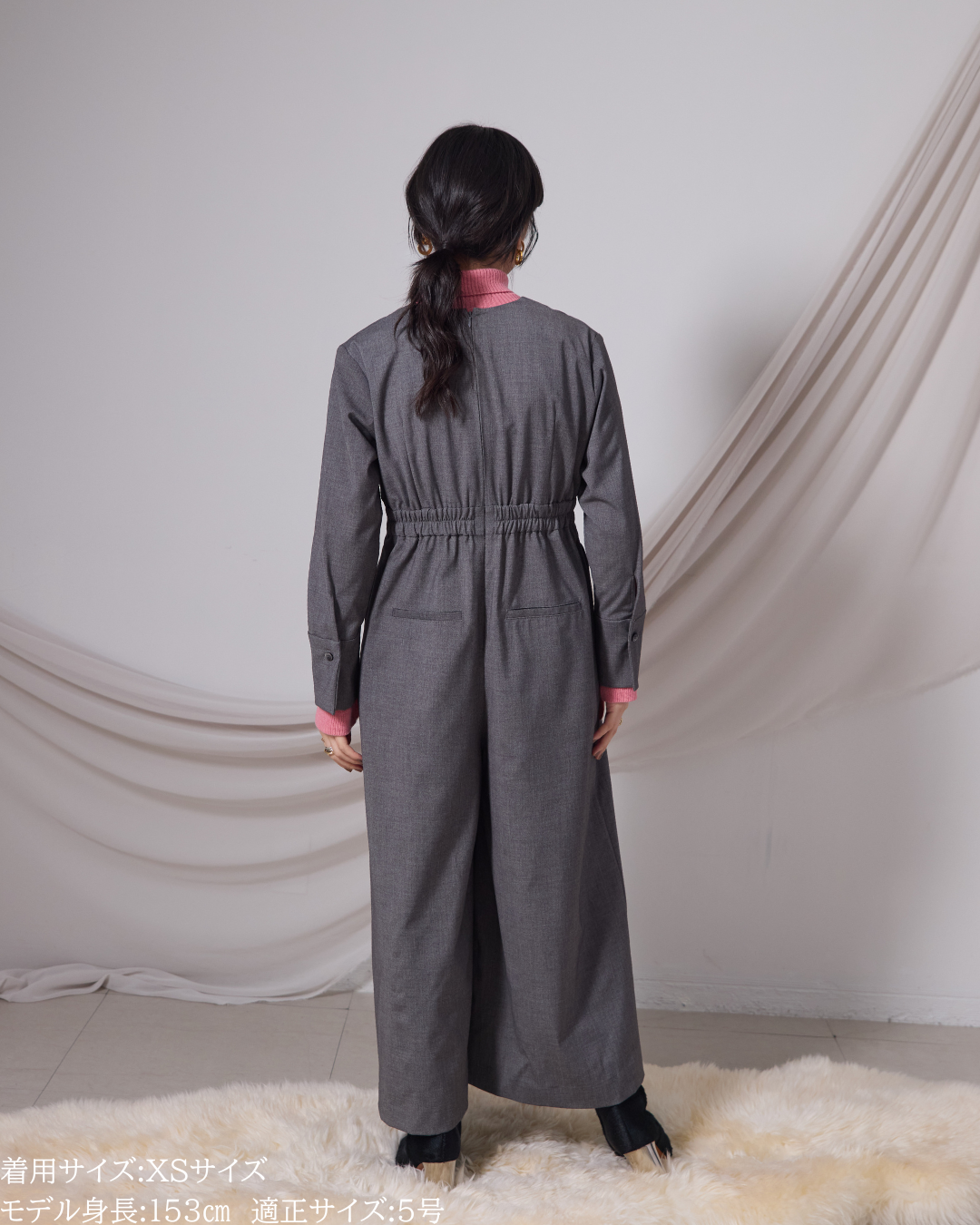 マニッシュなムード漂う梳毛(そもう)調素材を使用し、上品さと程よい抜け感を両立したオールインワンの登場です。