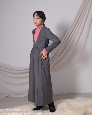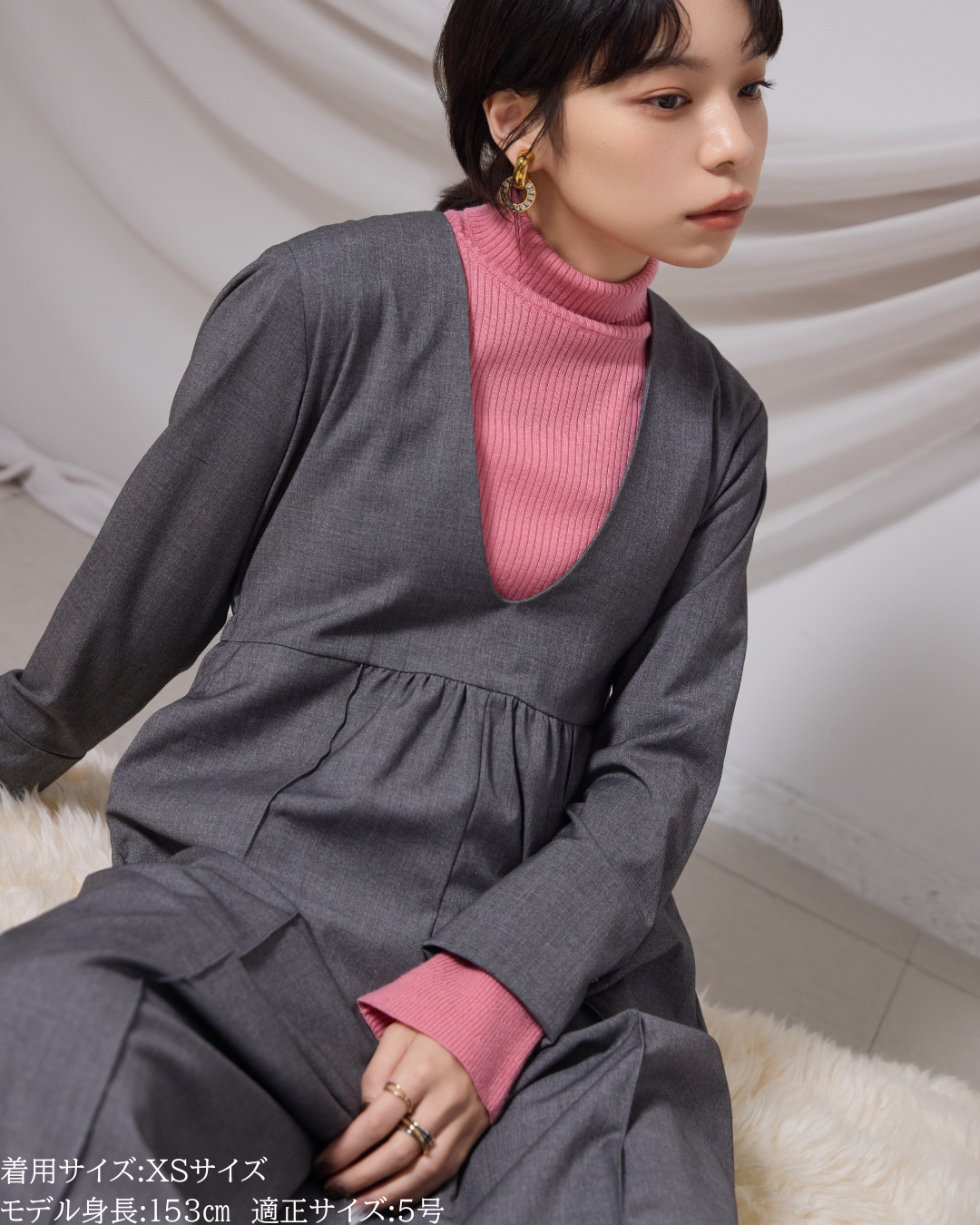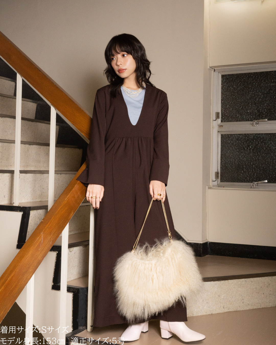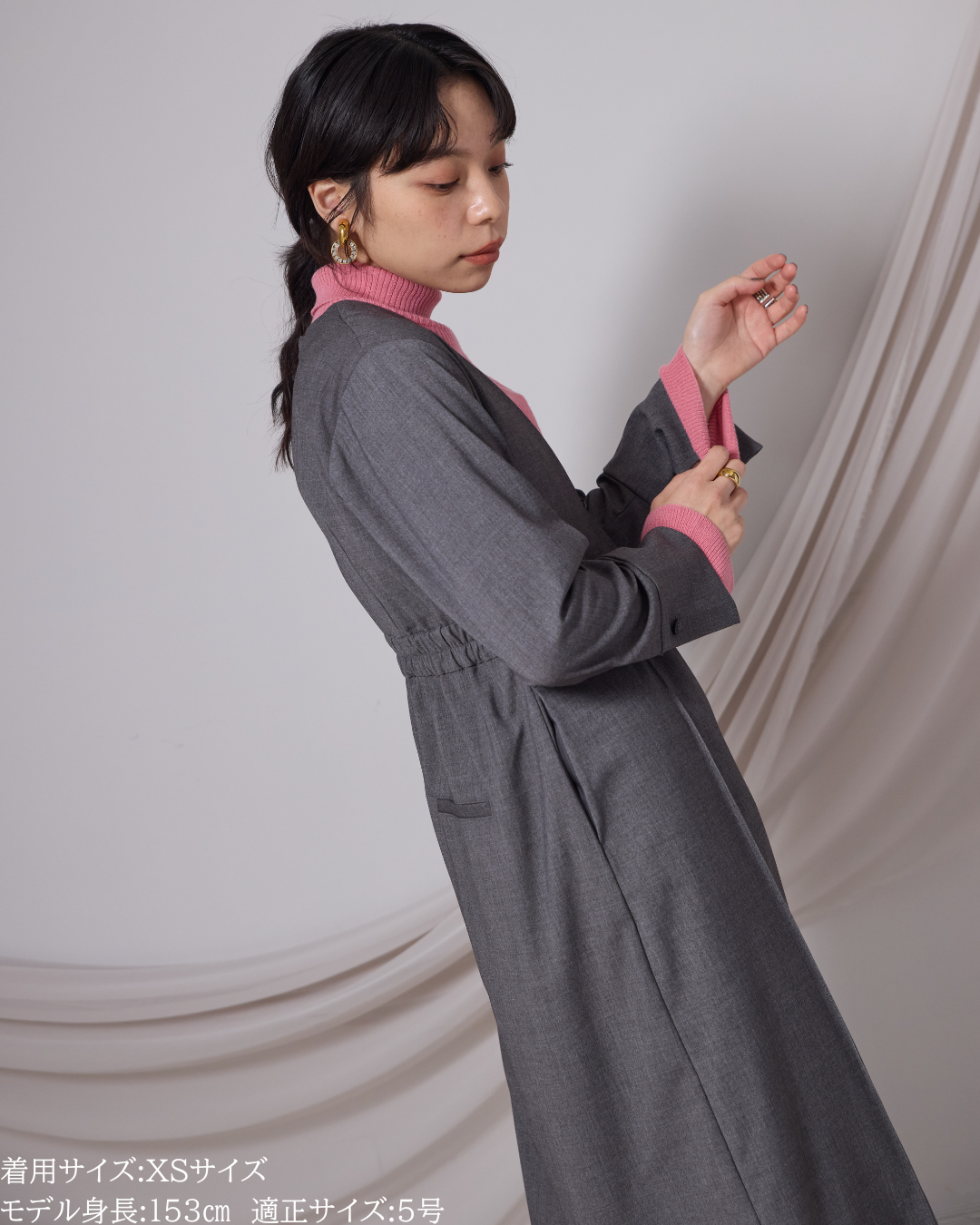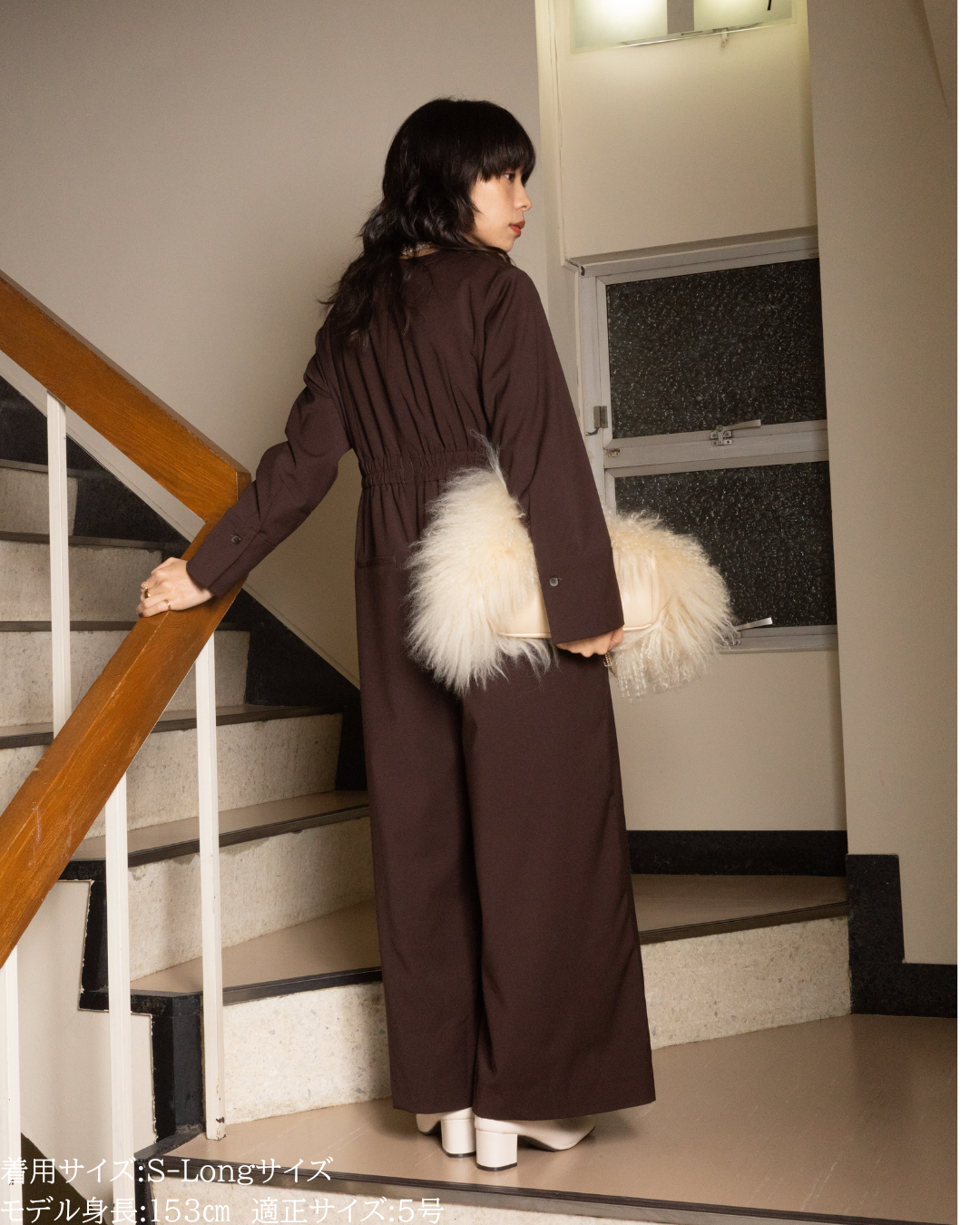 マニッシュなムード漂う梳毛(そもう)調素材を使用し、上品さと程よい抜け感を両立したオールインワンの登場です。