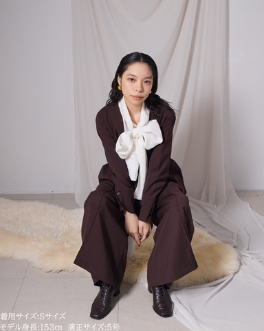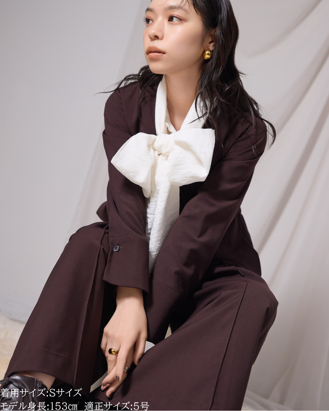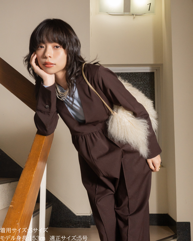 コンパクトな上身頃に対して、パンツ部分にたっぷりとボリュームを持たせることで、小柄さんのスタイルを美しく引き立てる“メリハリシルエット”を叶えました。