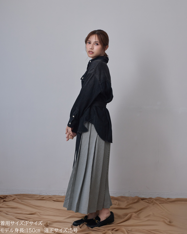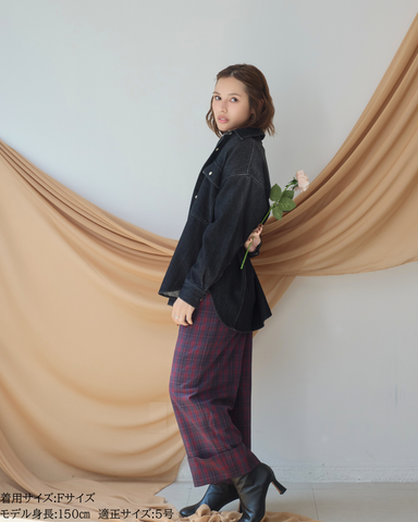 やや長めの着丈で気になるヒップやウエストもカバーしつつ、前を閉じて一枚着にも、後ろに抜いてリラックス感あるスタイルにも、着こなし次第で表情が変わるアイテムです。