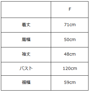 (F)全体的ににゆとりがあり、腕周り、お腹周りもきつさを感じることなく着ることが出来ます。袖丈は親指が隠れる長さ、全体的に長めですが、ウエストをベルトで締めると丁度良い丈感になります。 -