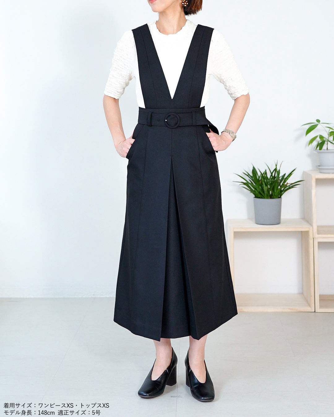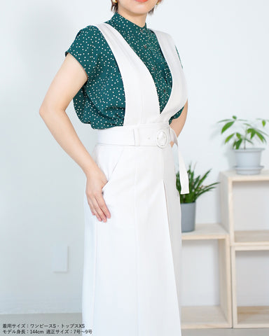 (画像サイズS)ウエストやヒップ共にちょうどよいサイズ感でした。肩紐やウエストベルトは長さを調整できますのでXSサイズの方も着用できそうです。中肉素材でボディラインを拾いにくいです。スタイルアップして背が高く見える気がしました。144cm(通常3~5号、肩幅35㎝、バスト78㎝、ウエスト56㎝、ヒップ84㎝、股下63cm)