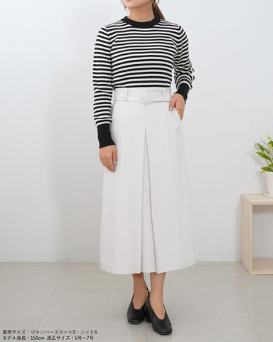 スカートだけにして、ざっくりニットとあわせるもおすすめです。