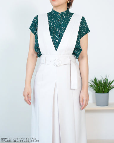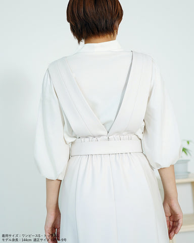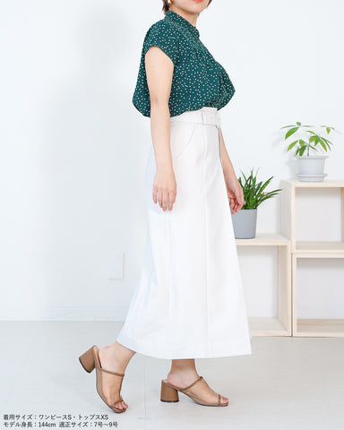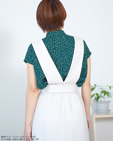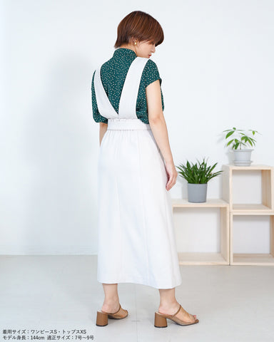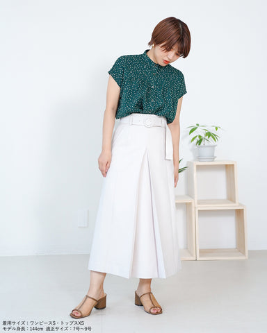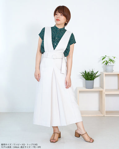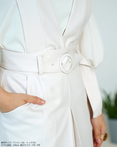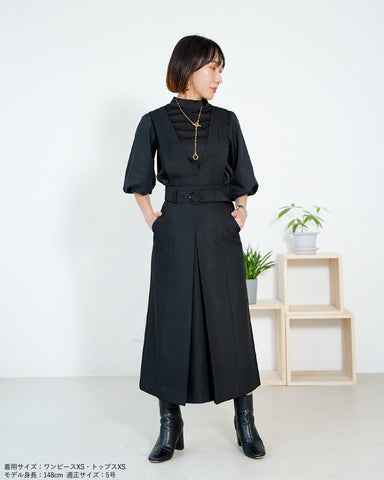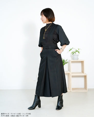 上身頃パーツは釦で取り外し可能でジャンパースカート、共地ベルト付きスカート、ベルト無しの普通のボックスプリーツスカートとして着用いただけます。