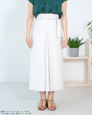 飽きのこないシンプルで上品なボックスプリーツのスカートです。後のシャーリングゴムで伸縮性を持たせています。