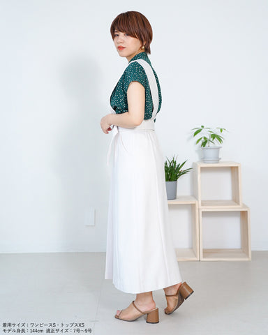 (XS/左)ジャストサイズです。肩紐は短いほうにすればずれおちる心配はなさそうです。着丈も足首がしっかりみえる丈で140cm前半の方も問題なく着用できると思います。