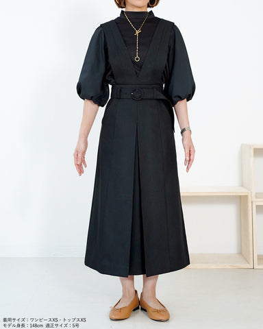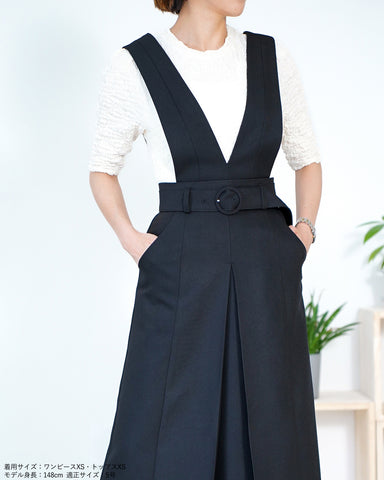 前後深Vのカットがすっきり大人見えするジャンスカです。■Fablic