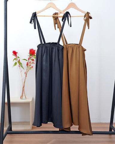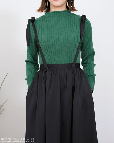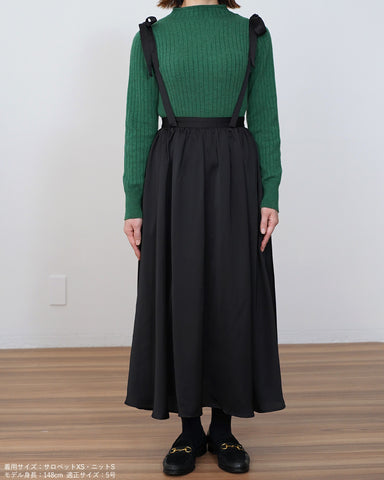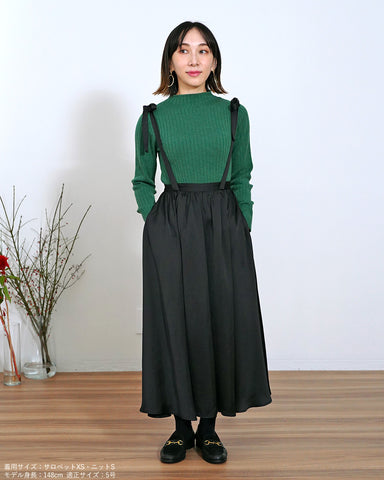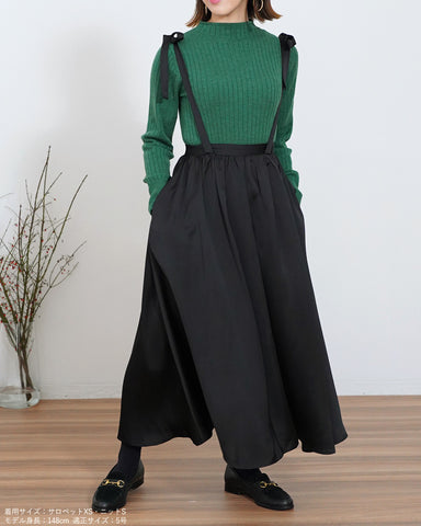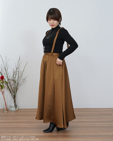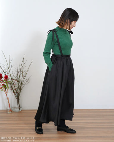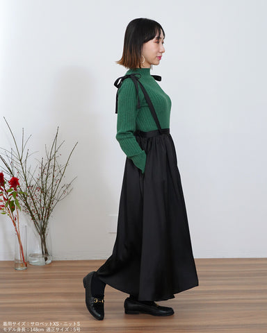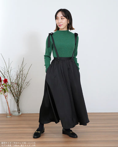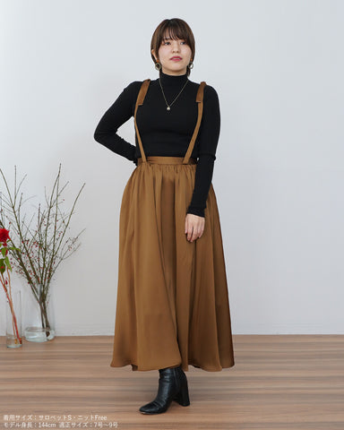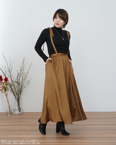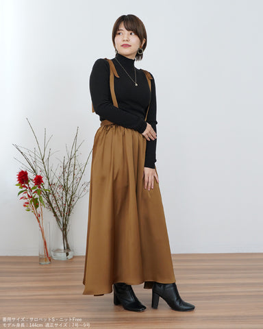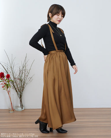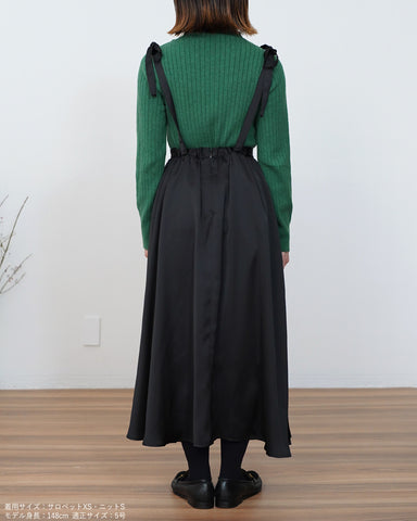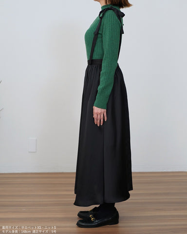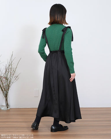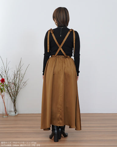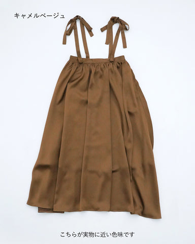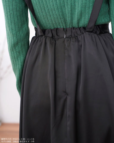 美しいマットサテン生地をたっぷり感と使用したサロペットスカートです。
