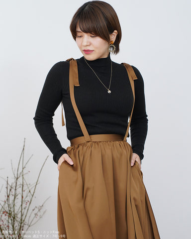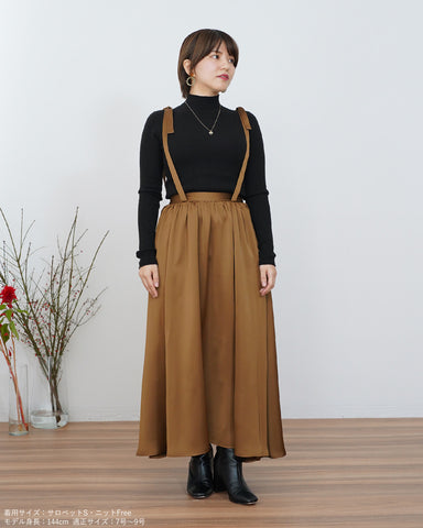 上品な生地感でお出かけコーデをブラッシュアップするサロペットスカート。