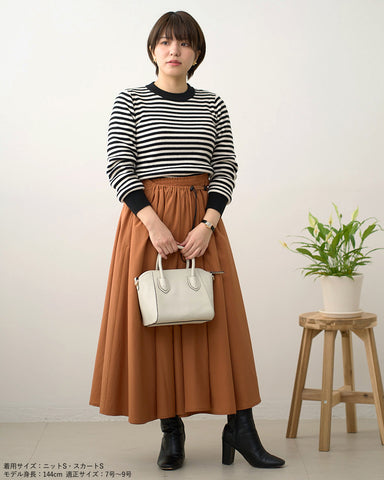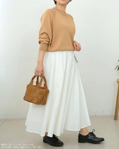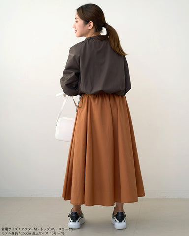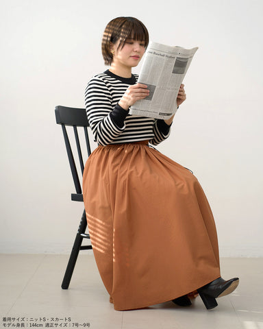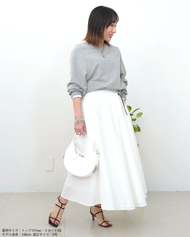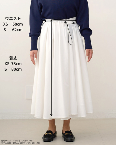 (XS)ウエストゴムのためXSでも問題なく着用できます。個人的にギャザースカートはボリューム感控えめが好みのため、今回はXSを選びます。
