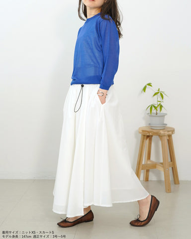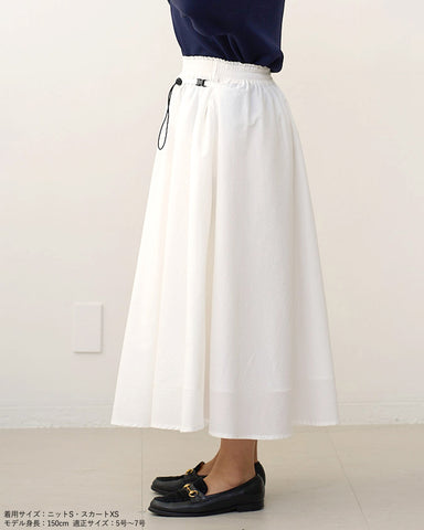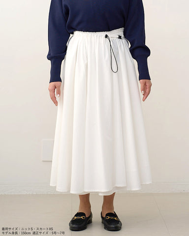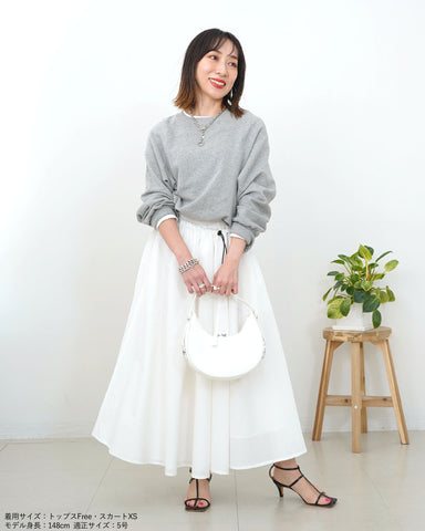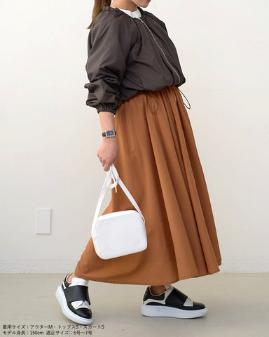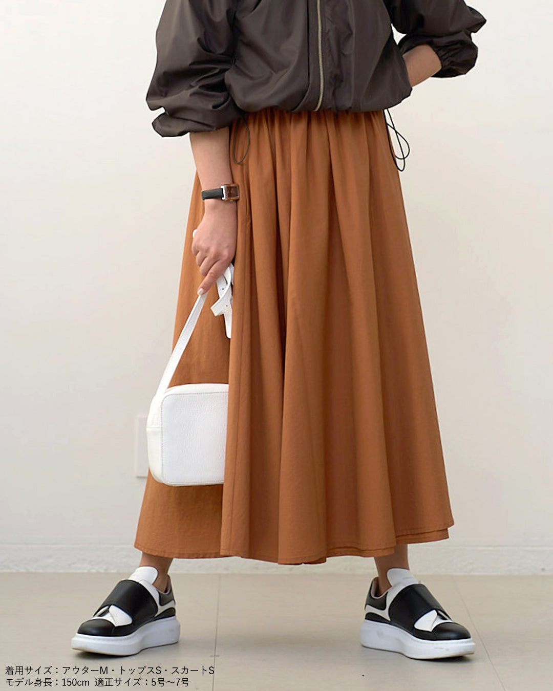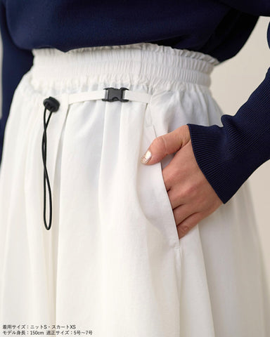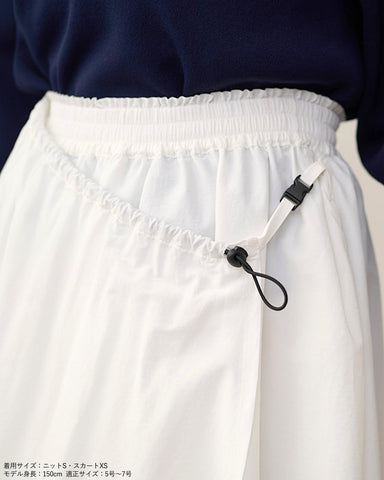 女性らしさの中にもスポーツテイストを取り入れた、2wayギャザースカートをおつくりしました。 ■Designドロストなどのスポーツテイストな要素を取り入れながら、女性らしいデザインにこだわったラップギャザースカート。 生地を惜しまずふんだん使用することで、豊かなボリューム感と動いた時の揺れが他にはないシルエットに。 フロント部分のラップは、サイドのストッパーでお好みの形にギャザー分量を調節できます。 後ろ側の透けが気になる人は、ストッパーを外してラップ部分をバック部分にまわして2重にするのも良しな2wayデザイン。 ポケットもついているため、日常使いもしやすい1着です。 ■Fablicシャリっとした軽やかさとドライタッチな肌触りで、オールシーズン利用できます。
