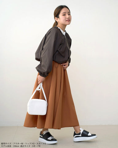 ご家庭で弱い洗濯機洗いが可能です。■Coordinate女性らしいデザインの中にスポーティテイストも入っているので、パーカーやフーディはもちろんのこと、きれいめニットやTシャツなどどんなトップスにでも合わせやすいスカートです。