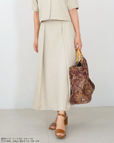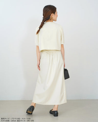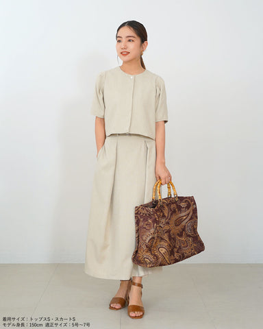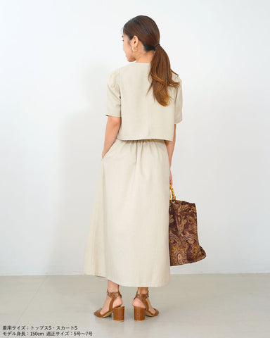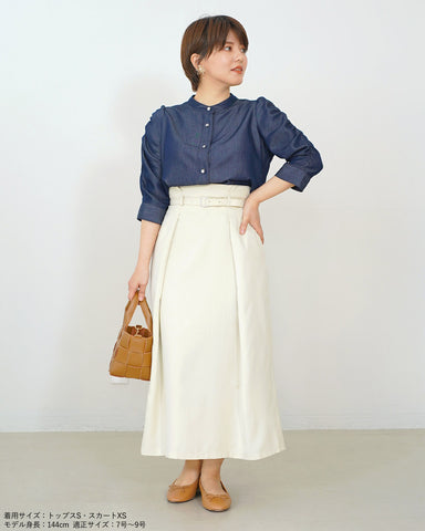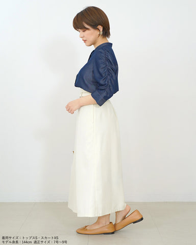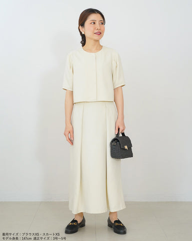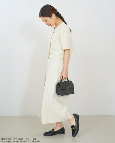 同素材の半袖ブラウス「ヘリンボーンクロップドブラウス【513】」とのセットアップでご着用いただくのが、一番おすすめです。