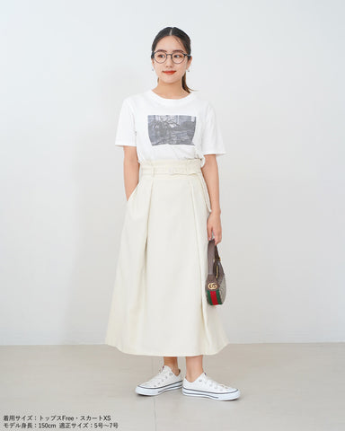 特徴的なデザインのあるスカートなので、単品スカートとしてTシャツやタンクトップを合わせてもカジュアルで◎