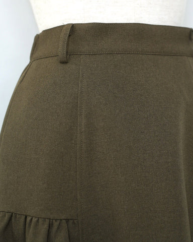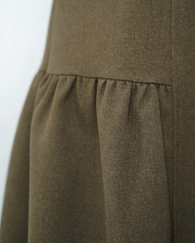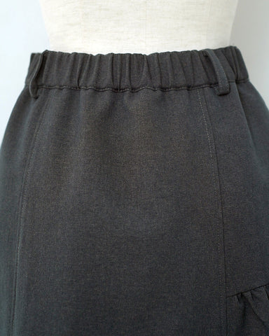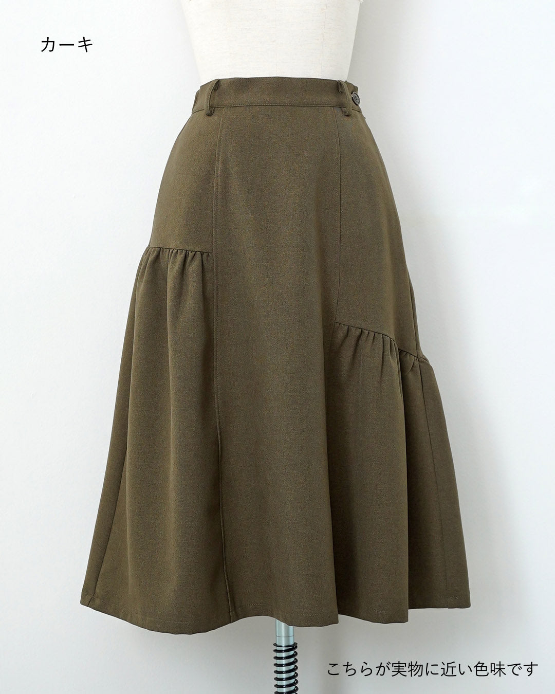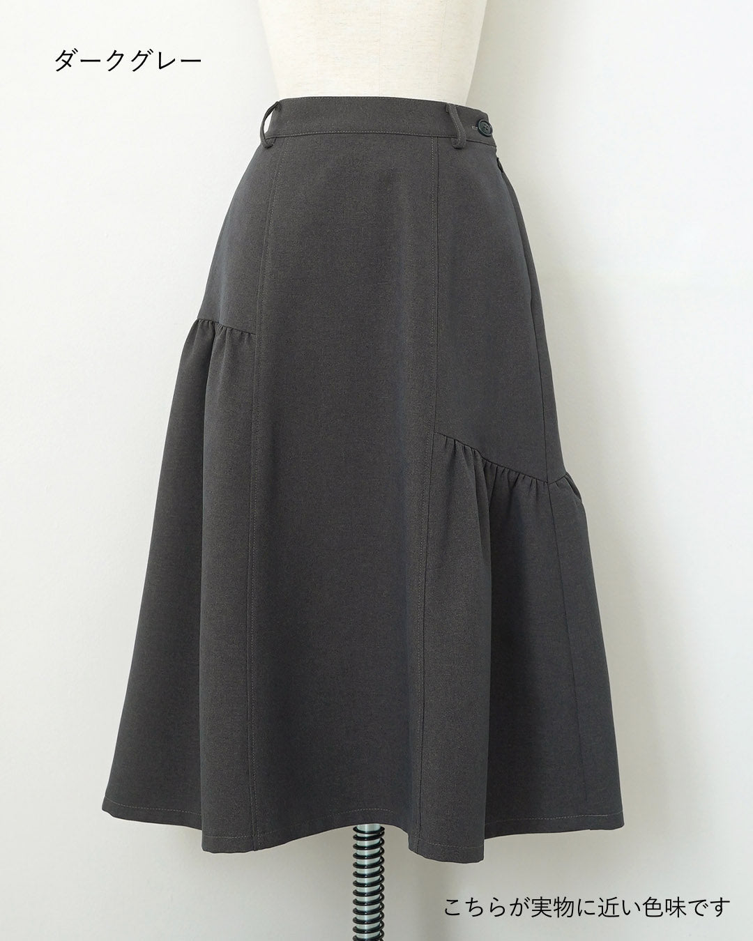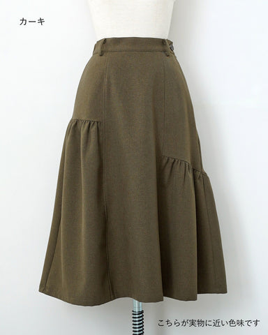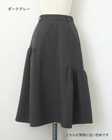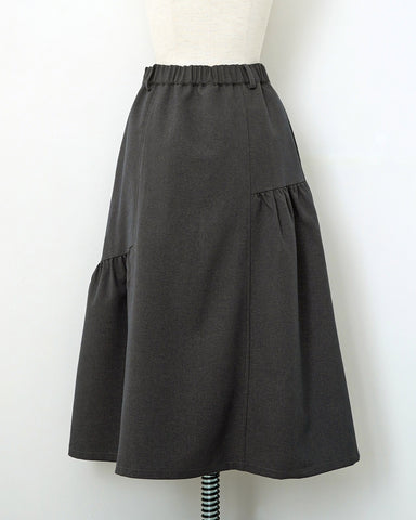 サイドにアシンメトリーなギャザーを施した、履くだけで主役になるスカートをお作りいたしました。