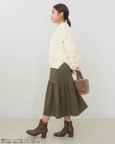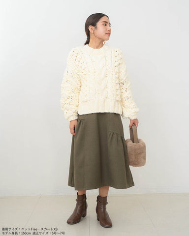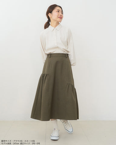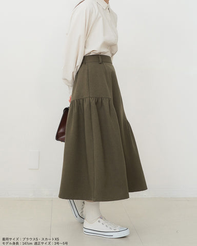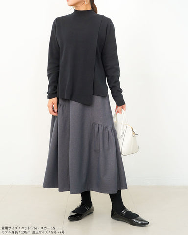 デザイン性があるスカートなので、シンプルなニットやシャツ合わせがお勧めです。