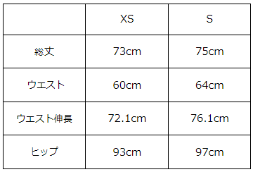 (XS/左)ウエストはジャストサイズ、ヒップにゆとりがあります。普段Sサイズを選ぶことが多い私でも問題なく着用できました。腰回りがすっきり見えるのにゆとり感があるのは嬉しいポイントでした。着丈はふくらはぎが隠れる程度でショートブーツと合わせやすいです。