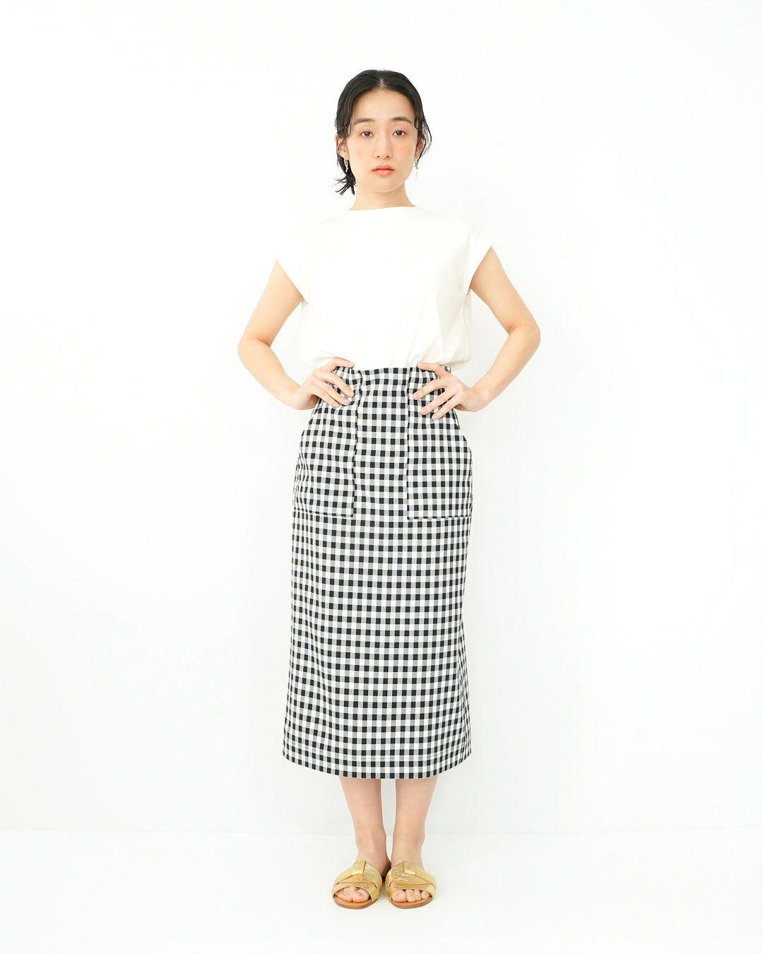 シンプルなストレートラインがヘルシーなギンガムスカートの登場です。